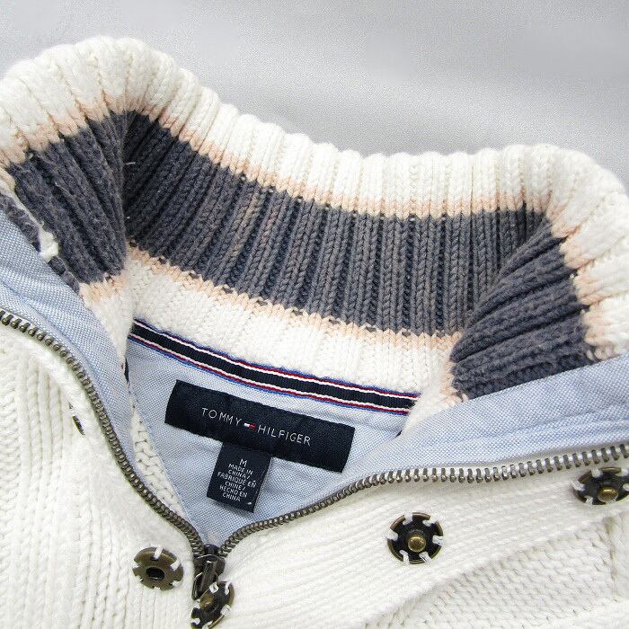 古着 TOMMY トミーヒルフィガー コットン プルオーバー アランニット セーター ハーフジップ ホワイト サイズ表記:M gd74686 | 古着屋SLAT オンラインショップ 【古着通販】|東京 高円寺 レギュラー・ヴィンテージ古着