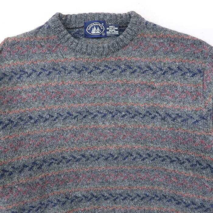 古着 ウールニット セーター ボーダー グレーベース サイズ表記:L gd74621