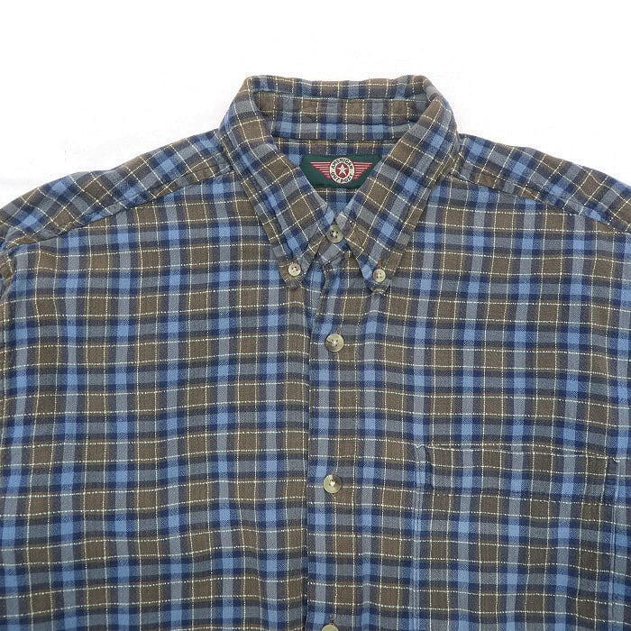 古着 ボタンダウンシャツ チェック柄 長袖 ブラウン ブルー サイズ表記:M gd75277