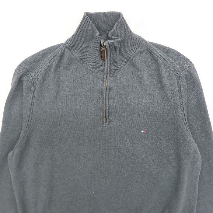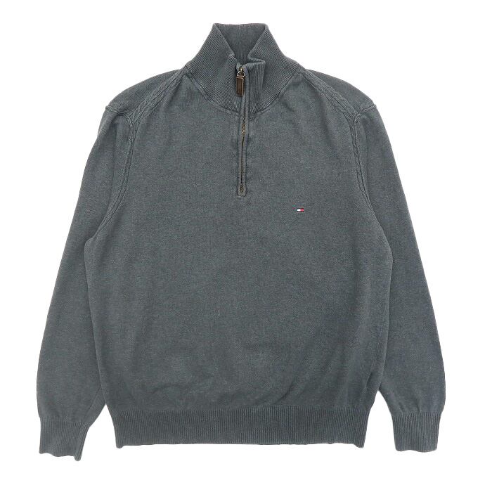 古着 TOMMY トミーヒルフィガー プルオーバー コットンニット セーター ハーフジップ ワンポイント グレー サイズ表記:L gd76086 | 古着屋SLAT オンラインショップ 【古着通販】|東京 高円寺 レギュラー・ヴィンテージ古着
