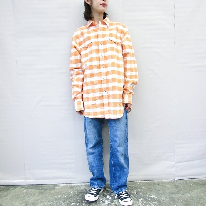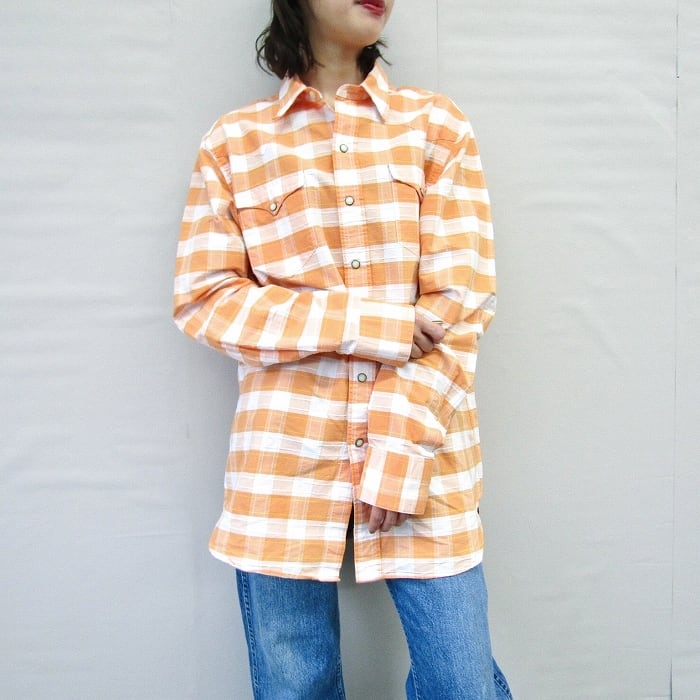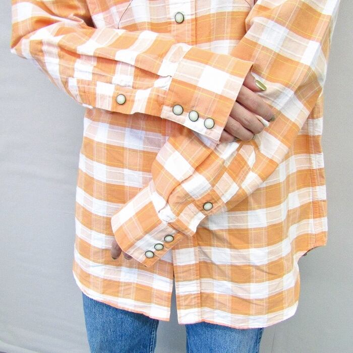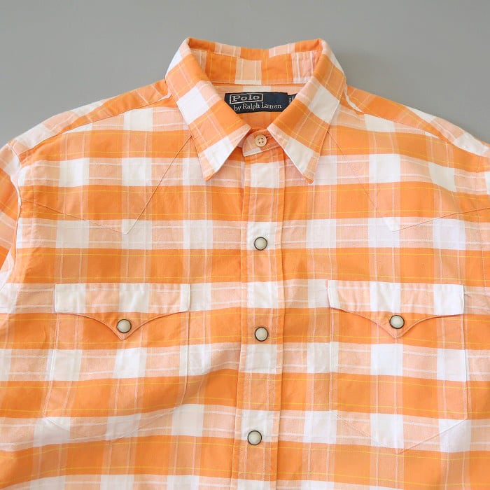 古着 ラルフローレン Polo Ralph Lauren ウエスタンシャツ チェック 長袖 オレンジ ホワイト サイズ表記:M gd76160 | 古着屋SLAT オンラインショップ 【古着通販】|東京 高円寺 レギュラー・ヴィンテージ古着