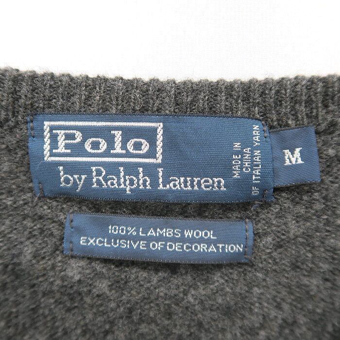 古着 ラルフローレン Polo Ralph Lauren ウールニット セーター Vネック ワンポイント ダークグレー サイズ表記:M gd68768