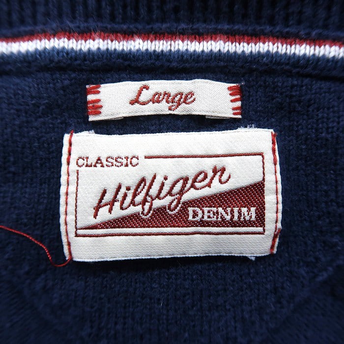 古着 TOMMY トミーヒルフィガー コットンニット セーター ワンポイント ネイビー サイズ表記:L gd69365 | 古着屋SLAT オンラインショップ 【古着通販】|東京 高円寺 レギュラー・ヴィンテージ古着