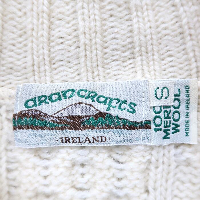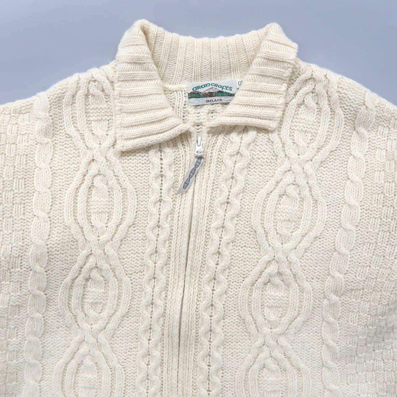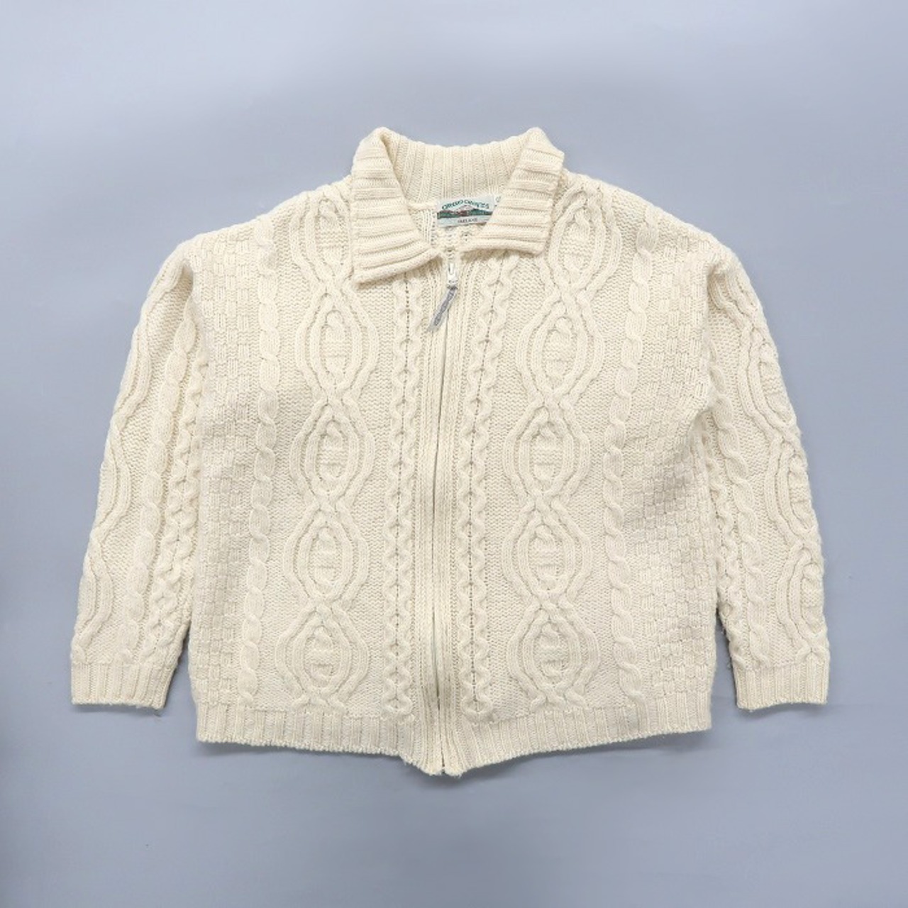 古着 アイルランド製 ウール ケーブルニット セーター フルジップ 襟付き アイボリー サイズ表記:S gd70406 | 古着屋SLAT オンラインショップ 【古着通販】|東京 高円寺 レギュラー・ヴィンテージ古着