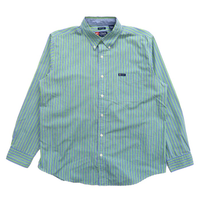 古着 チャップス CHAPS ボタンダウンシャツ 長袖 ワンポイント ストライプ ブルー ライトグリーン ホワイト サイズ表記:XL gd42524 | 古着屋SLAT オンラインショップ 【古着通販】|東京 高円寺 レギュラー・ヴィンテージ古着