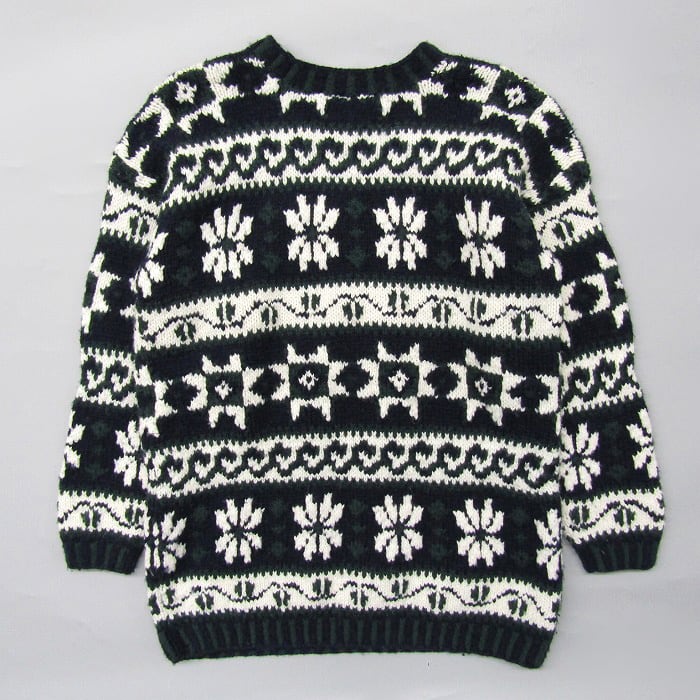 古着 ウールニット セーター 総柄 ネイビー グリーン ホワイト サイズ表記:M gd73905