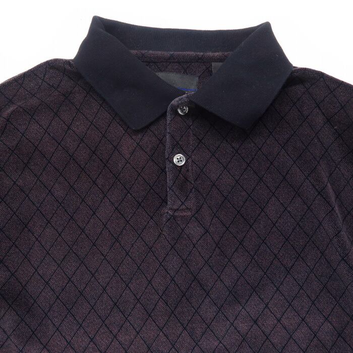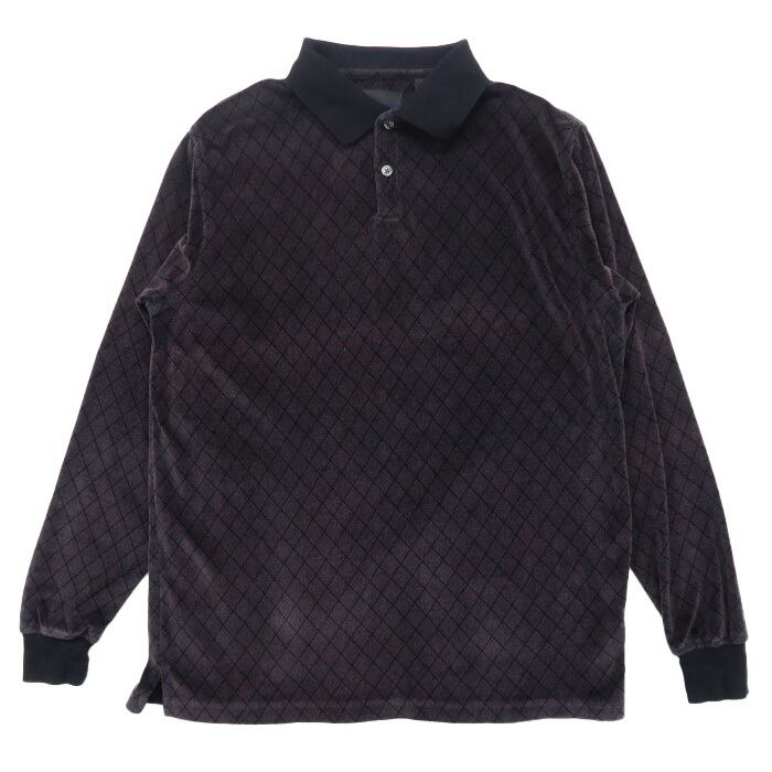 古着 ベロア 長袖ポロシャツ チェック チャコールグレー サイズ表記:S gd41015