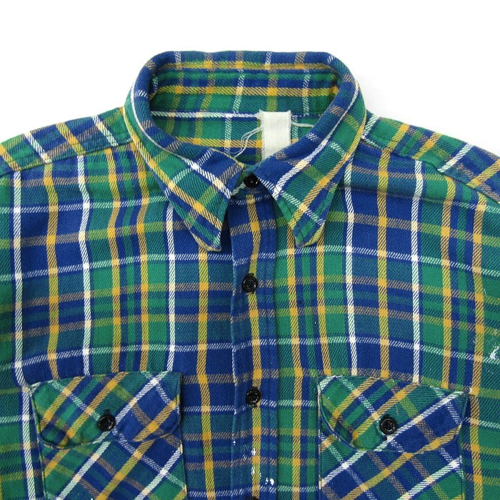 古着 ヘビーフランネルシャツ ヘビネルシャツ チェック 長袖 グリーン ネイビー ベース ビンテージ サイズ表記:-- gd74550