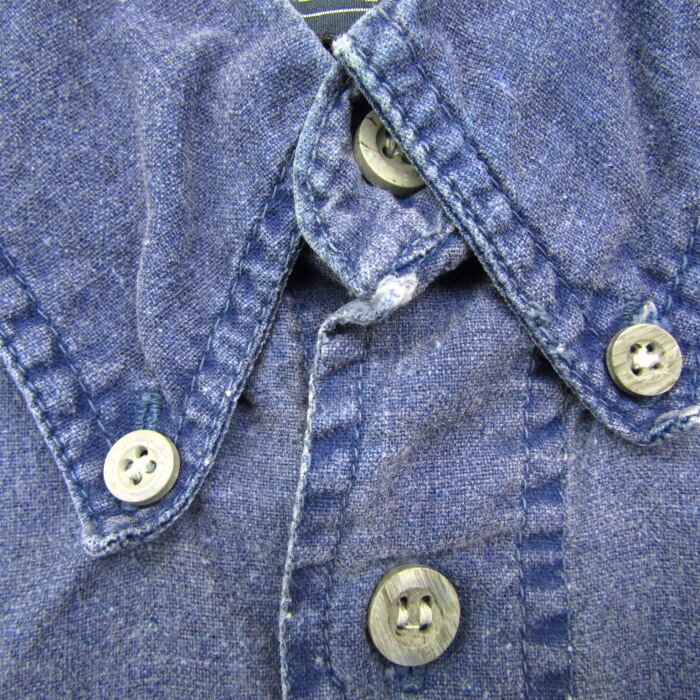 ■説明:全体的に色褪せなどの使用感があるほか、フロント右袖中央に染み汚れ、第一ボタン付近に軽いダメージ、左脇下・バック中央上部にほつれがありますが、古着らしい良い雰囲気があります。