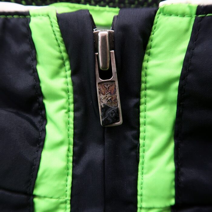 ■説明:全体的に使用感があるほか、イエローグリーンのボディの全体的な汚れ、ジップ取っ手が取れていますが、古着慣れした方なら気にならない程度かと思います。