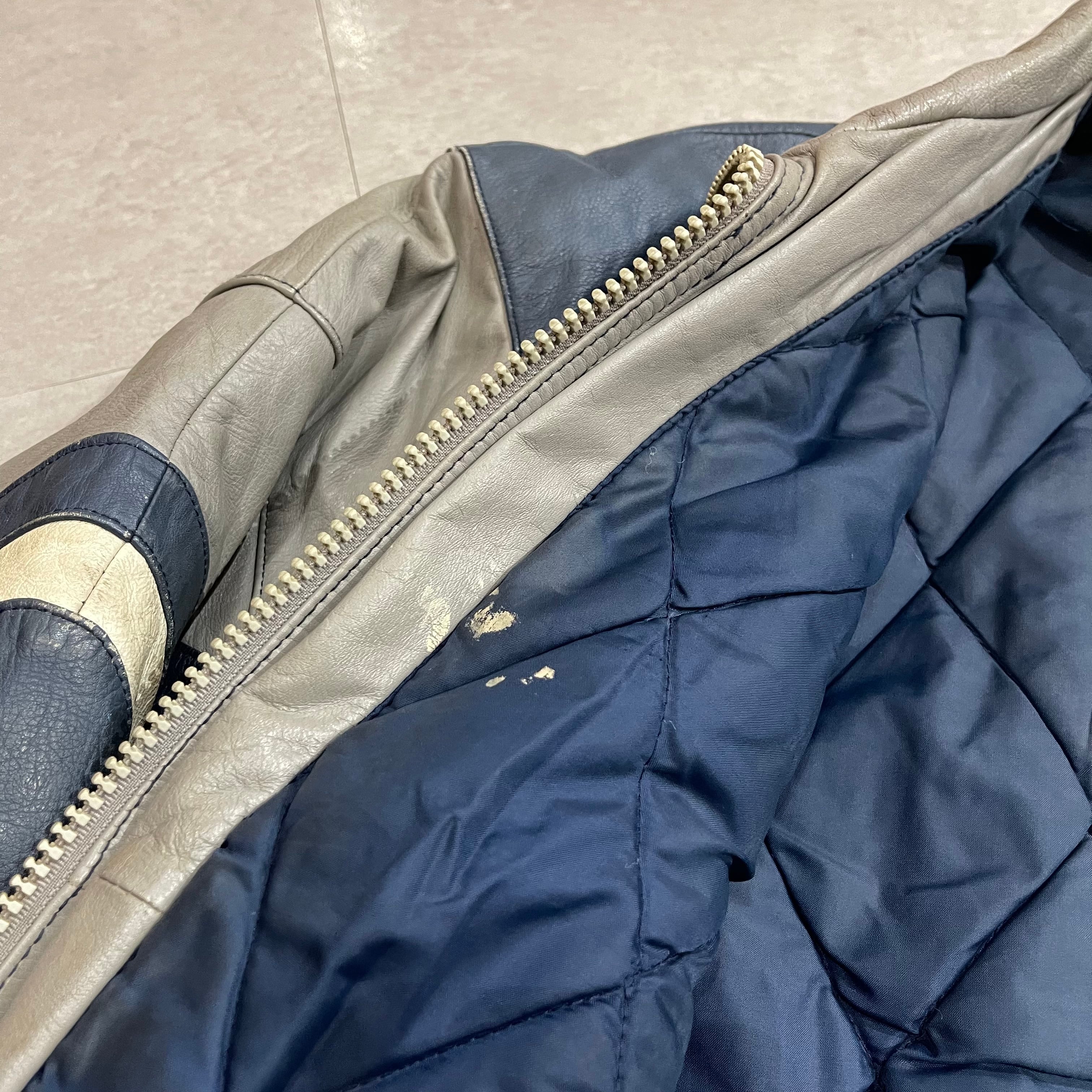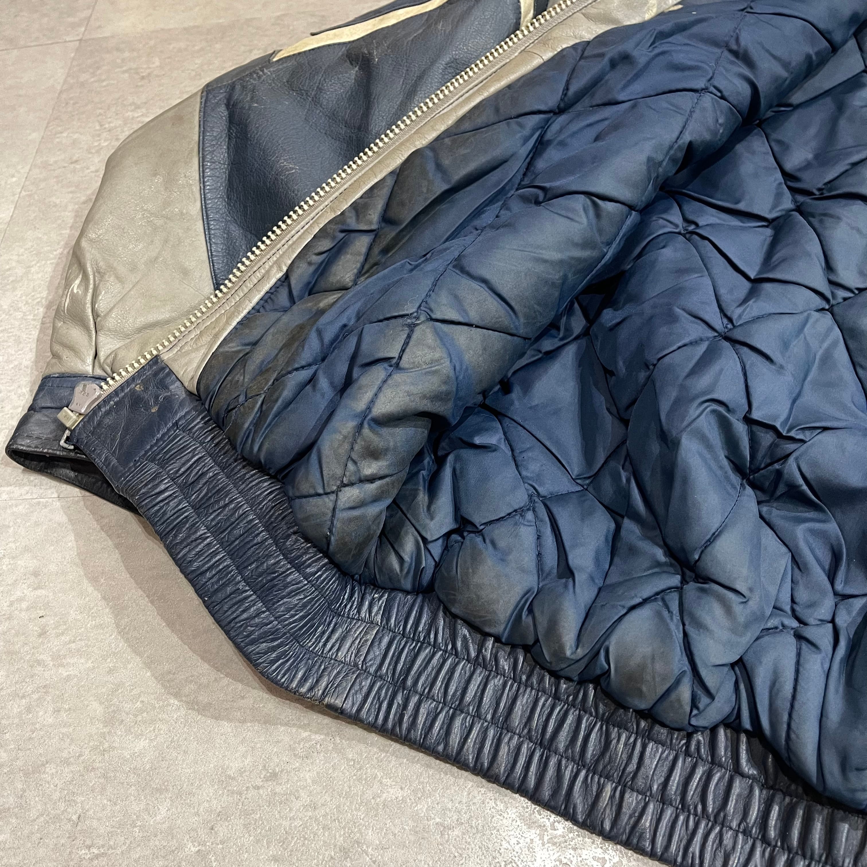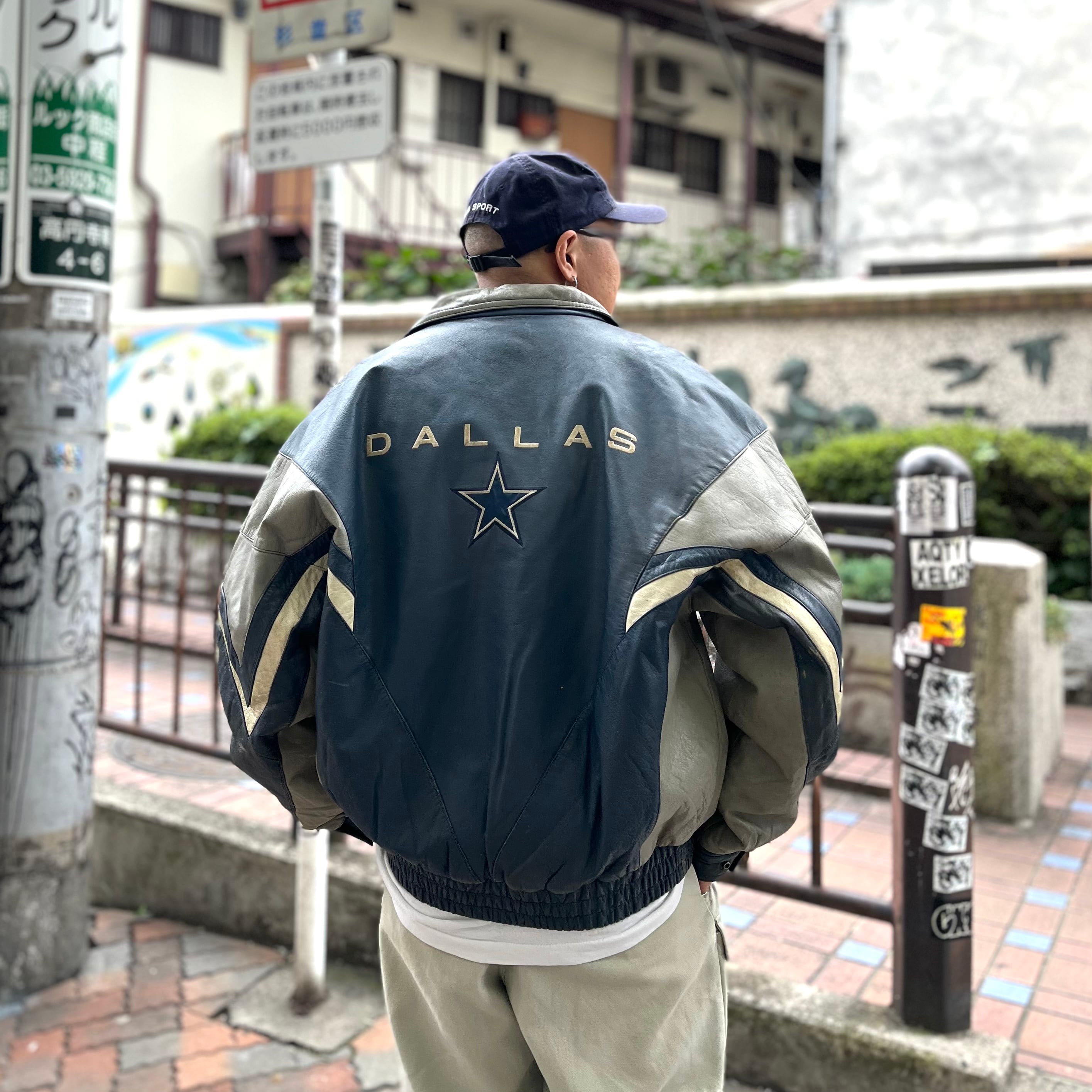 size:L【 DALLAS COWBOYS 】ダラス・カウボーイズ レザージャケット スタジアムジャンパー スタジャン 立ち襟 NFL フットボール ネイビー 古着 古着屋 高円寺 ビンテージ