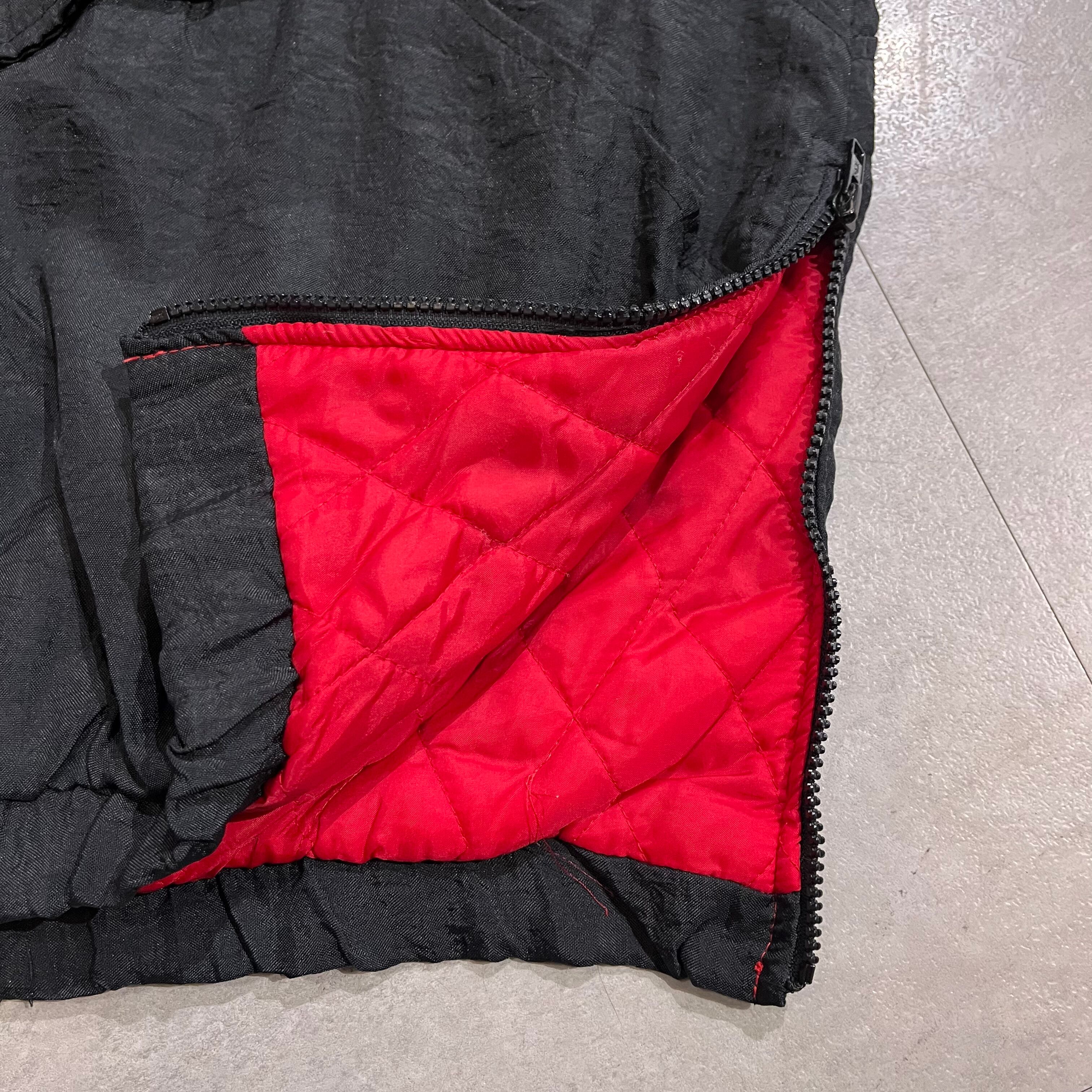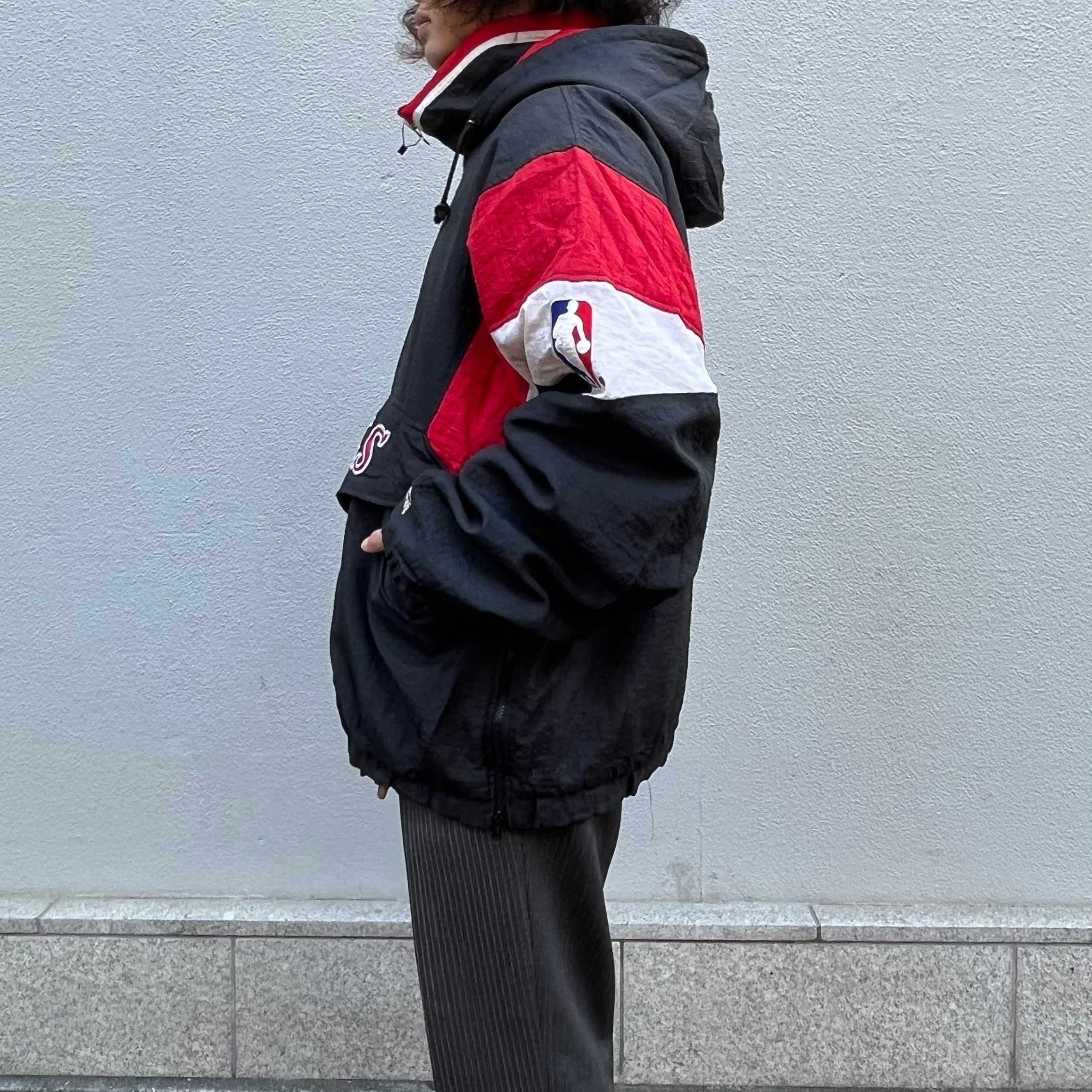 【 CHICAGO BULLS 】シカゴブルズ ナイロンジャケット 中綿ナイロン プルオーバー ハーフジップ フーディー ブラック 黒 古着 古着屋 高円寺 ビンテージ