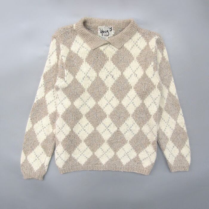 古着 レディース ニット セーター アーガイル柄 襟付き ホワイト グレーベージュ サイズ表記:L gd74305 | 古着屋SLAT オンラインショップ 【古着通販】|東京 高円寺 レギュラー・ヴィンテージ古着