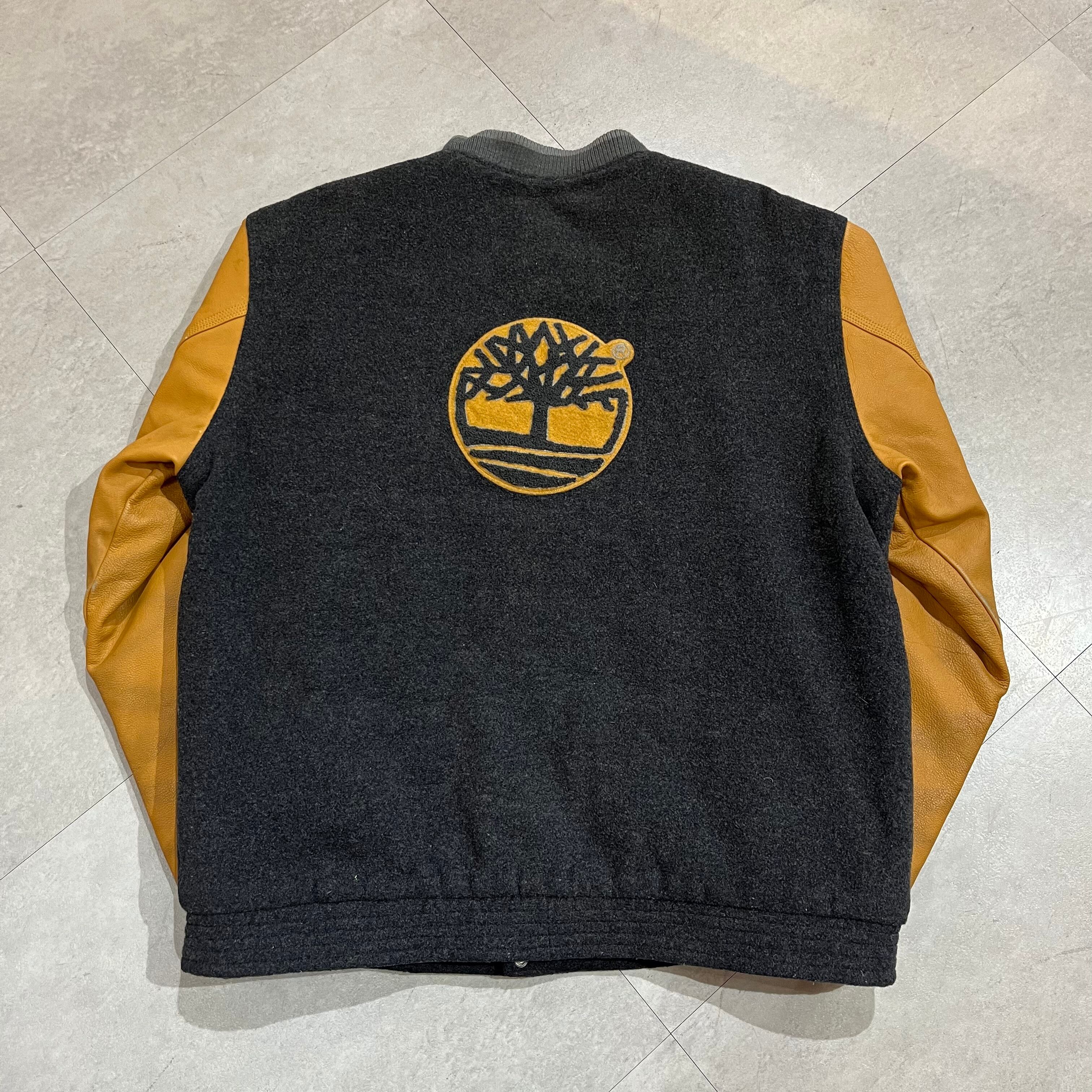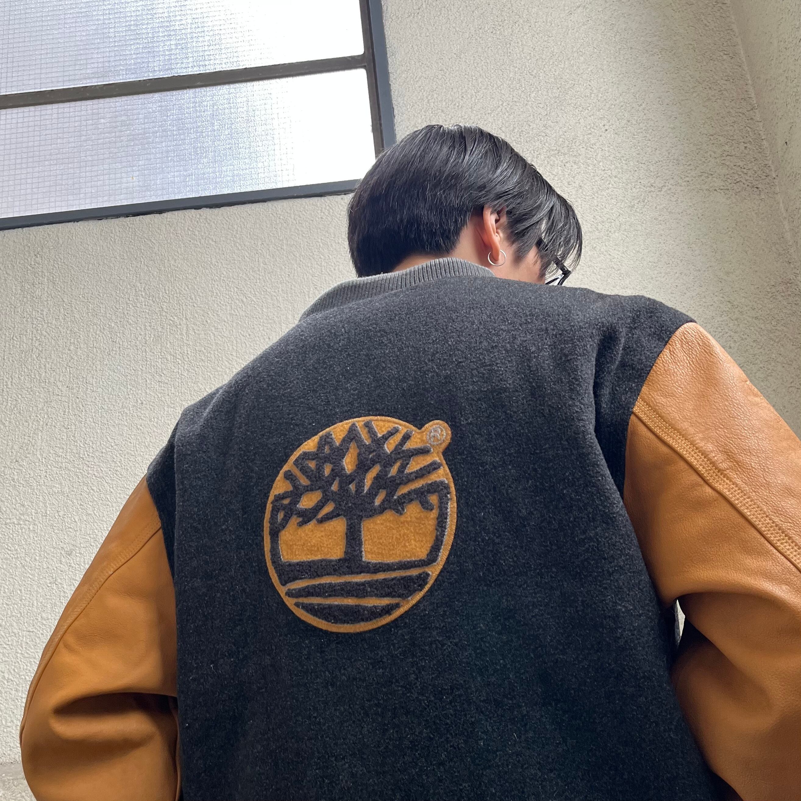 size:L【 Timberland 】ティンバーランド スタジアムジャケット スタジャン ウールジャケット 袖レザー 古着 古着屋 高円寺 ビンテージ