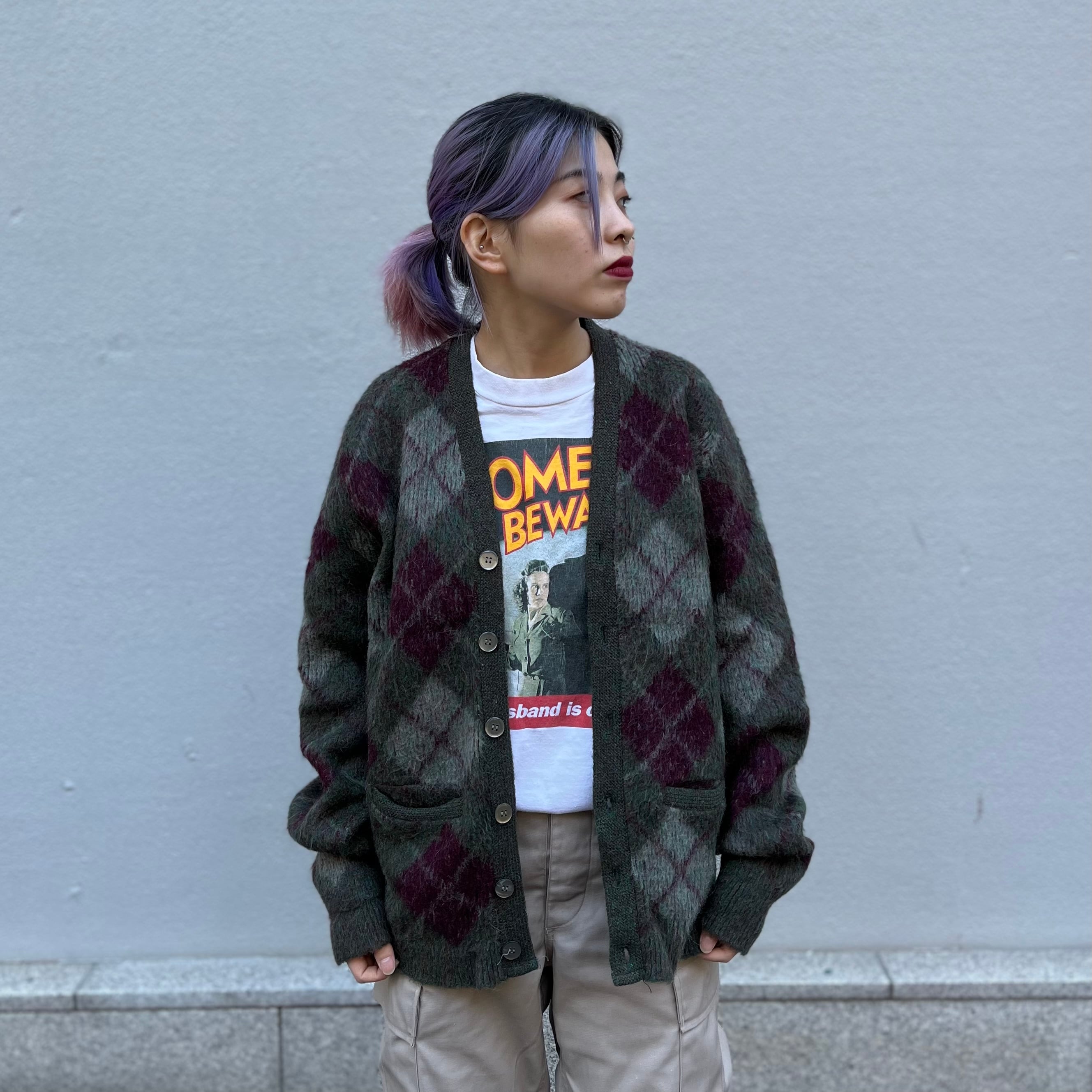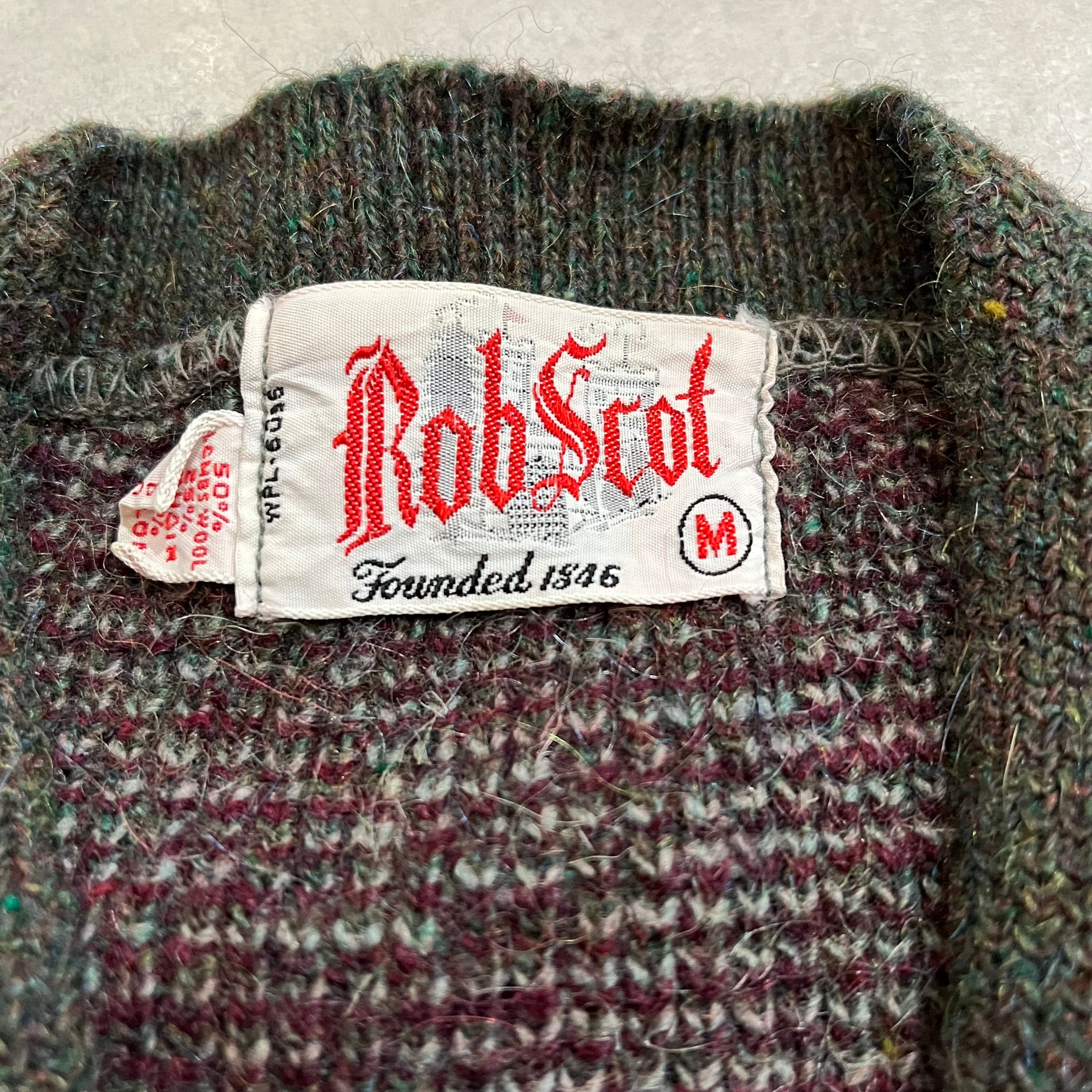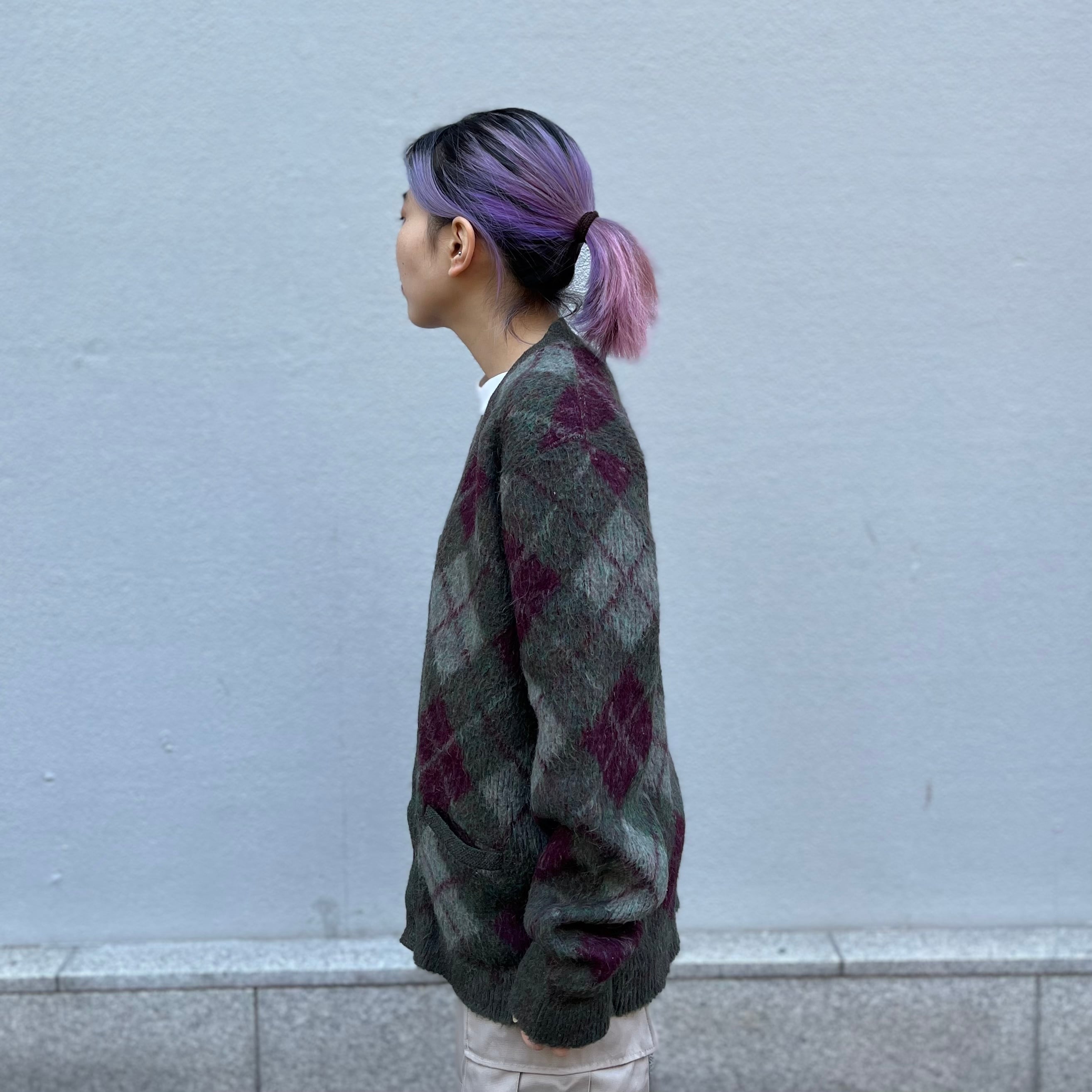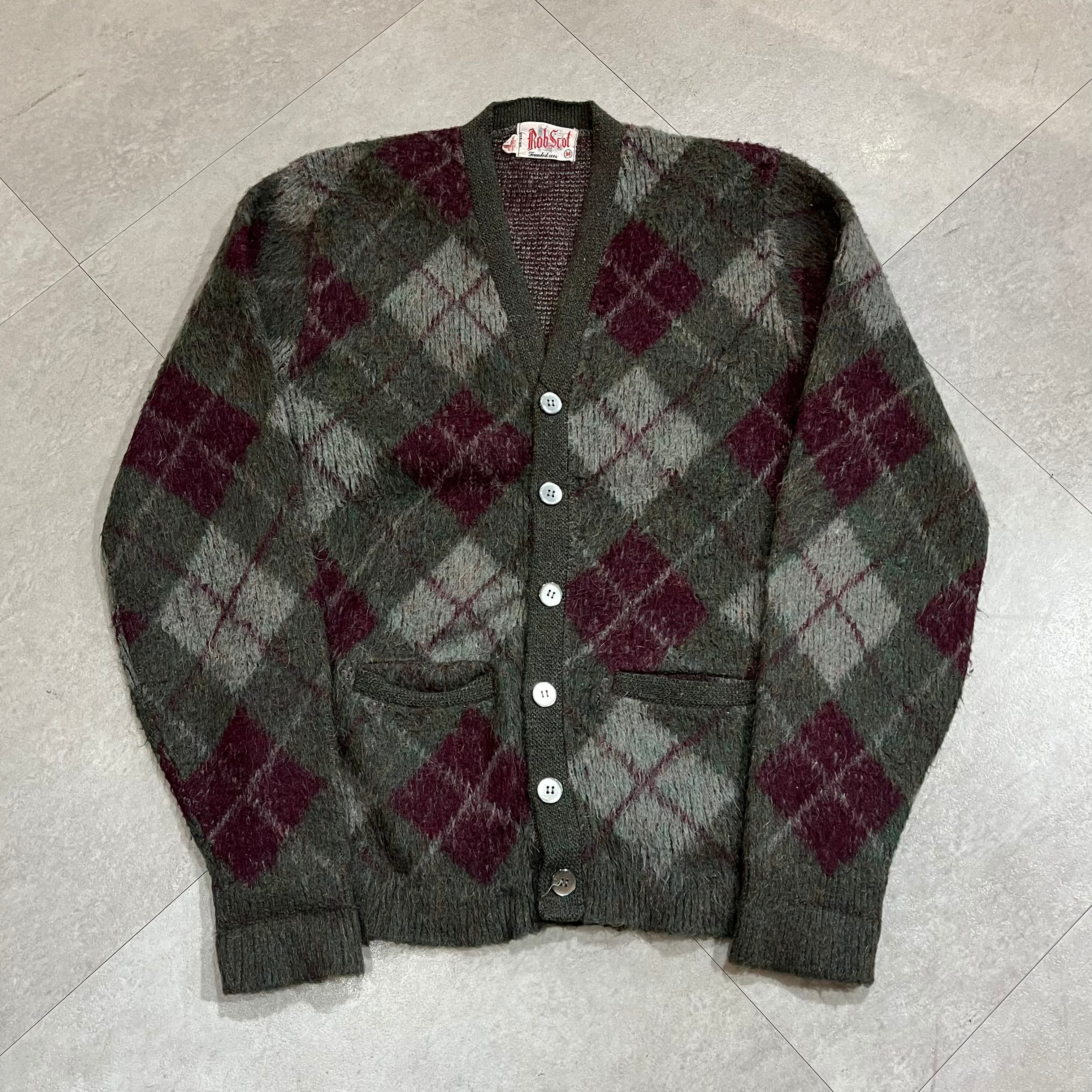 60年代 size:M【 RobScot 】ロブスコット mohair cardigan モヘアカーディガン ビンテージカーディガン モヘア カーディガン チェック柄 総柄 グリーン ボルドー 緑 紫 古着 古着屋 高円寺 ビンテージ