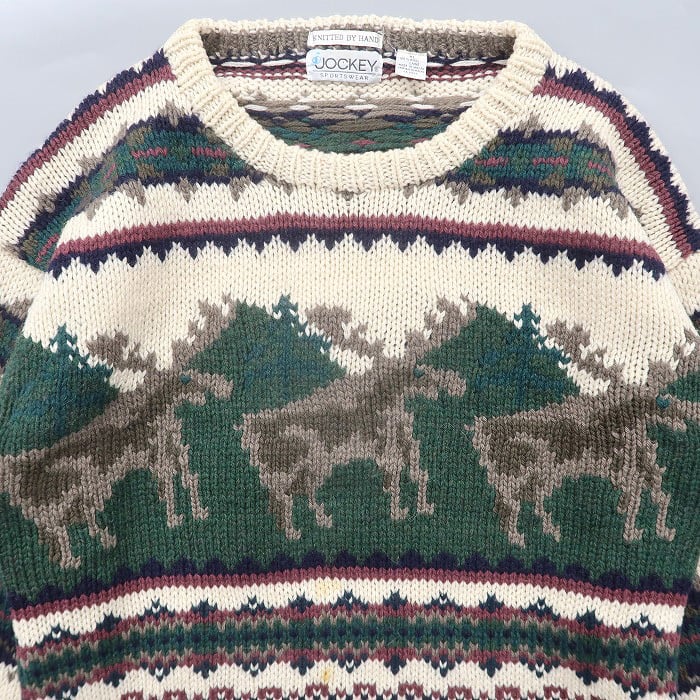 古着 ウールニット セーター アニマル柄 シカ マルチカラー サイズ表記:XL gd73344