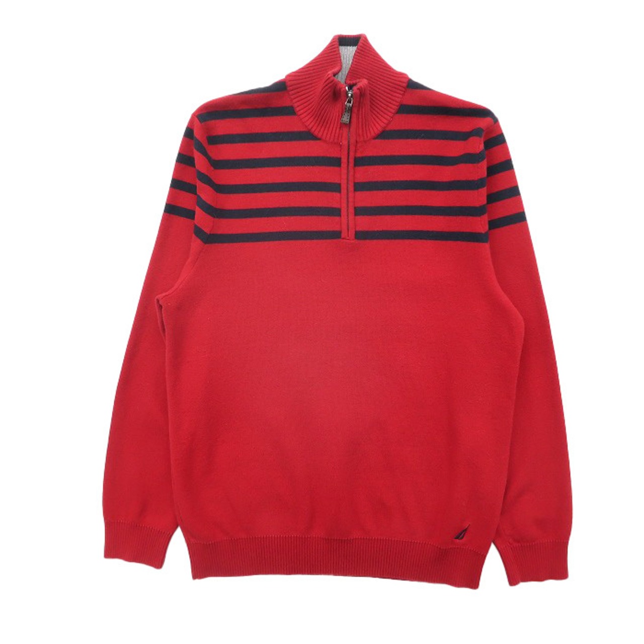 古着 ノーティカ NAUTICA プルオーバー コットンニット セーター ハーフジップ レッド ネイビー サイズ表記:L gd73206 | 古着屋SLAT オンラインショップ 【古着通販】|東京 高円寺 レギュラー・ヴィンテージ古着