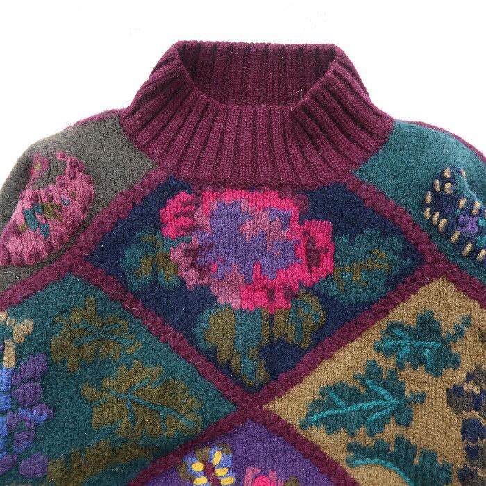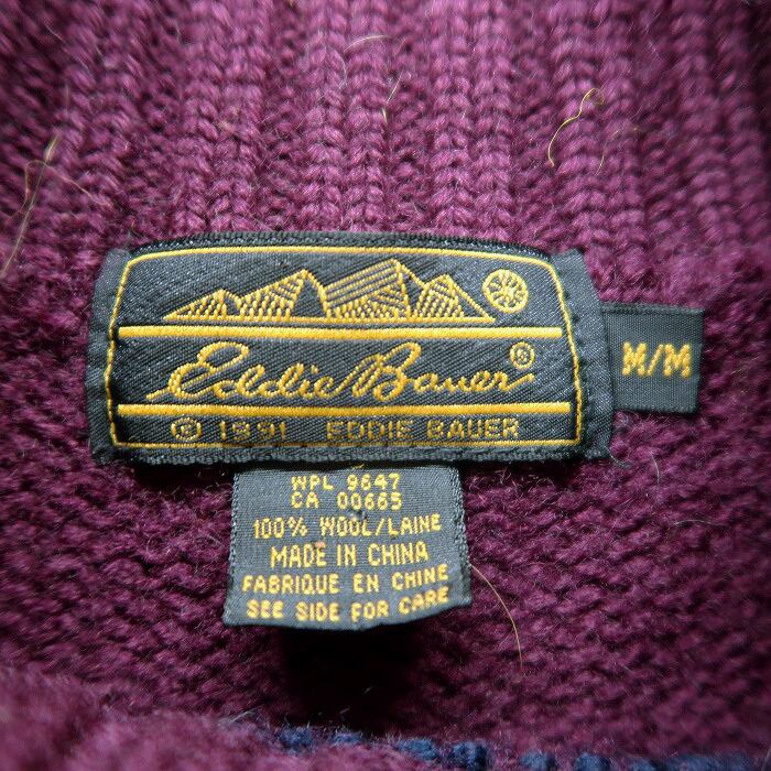 古着 レディース エディーバウアー ウールニット セーター 総柄 モックネック パープルベース サイズ表記:M gd70703