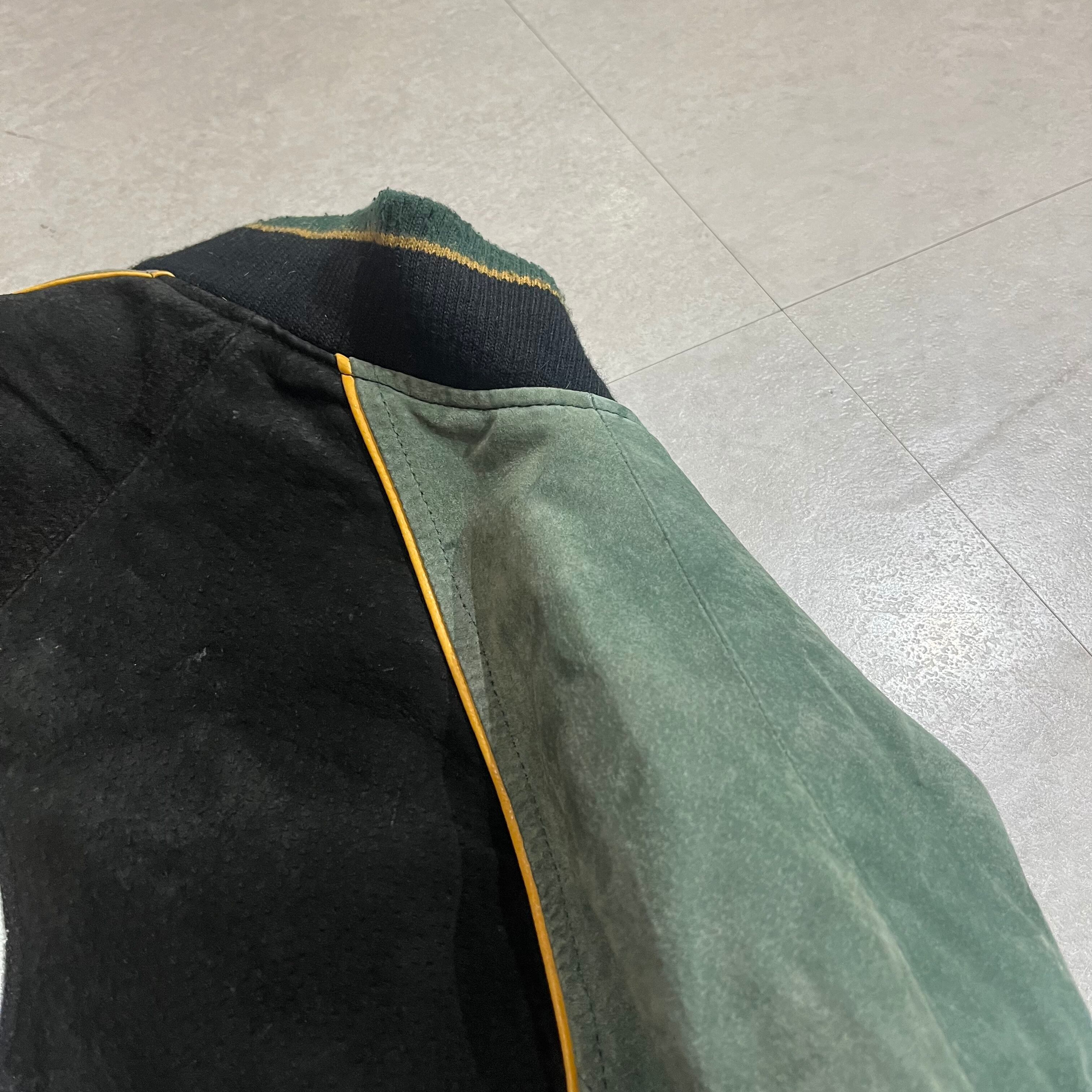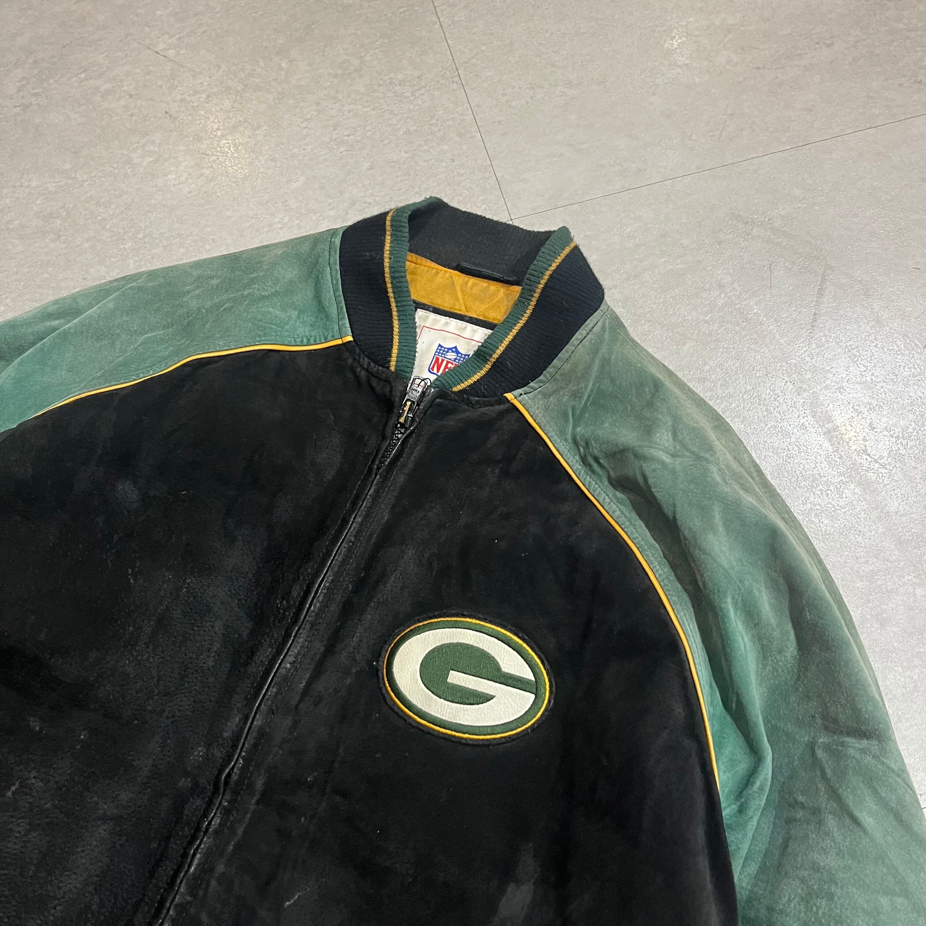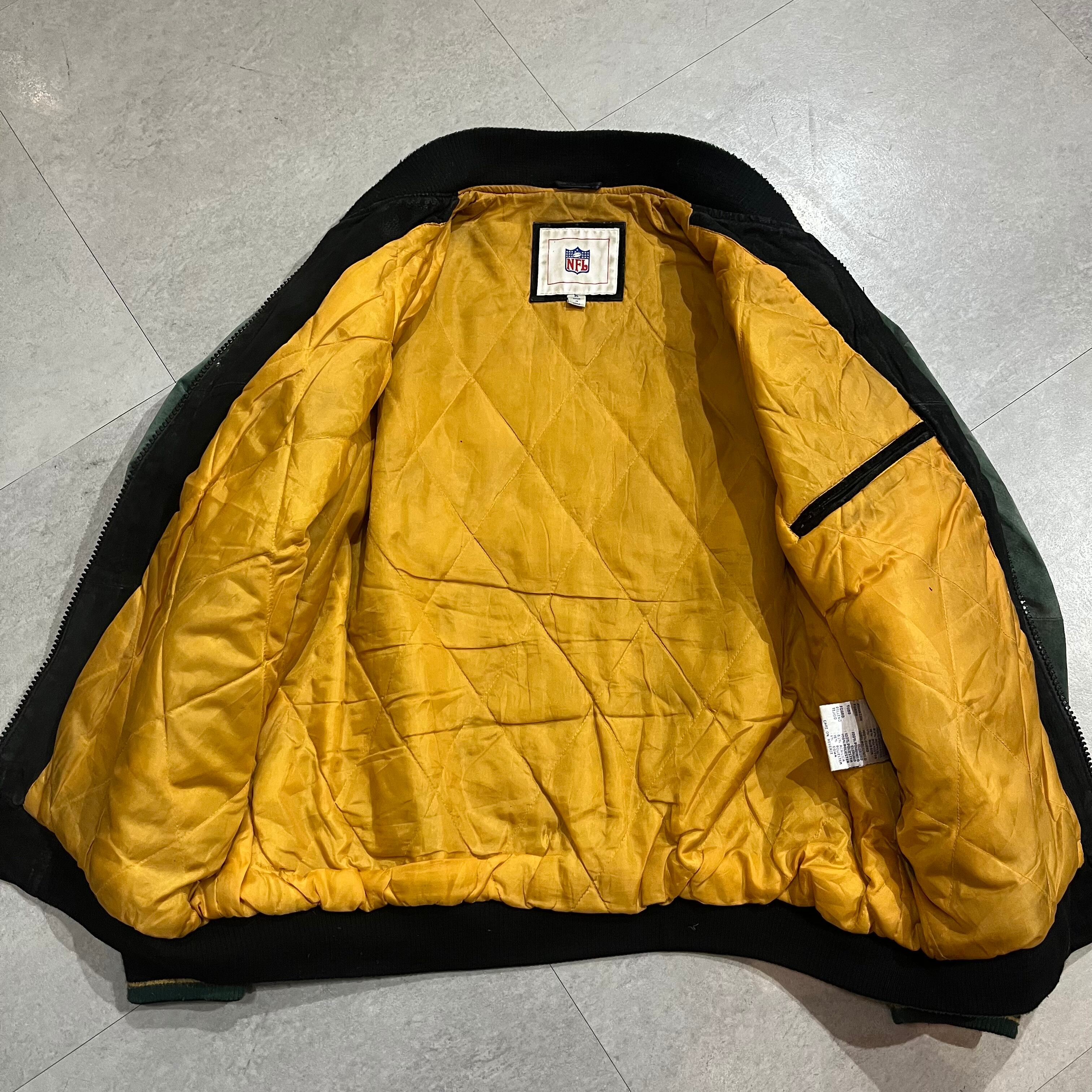 size : XL【 PACKERS 】パッカーズ レザージャケット スタジアムジャンパー スタジャン リブライン 黒 緑 黄 古着 古着屋 高円寺 ビンテージ