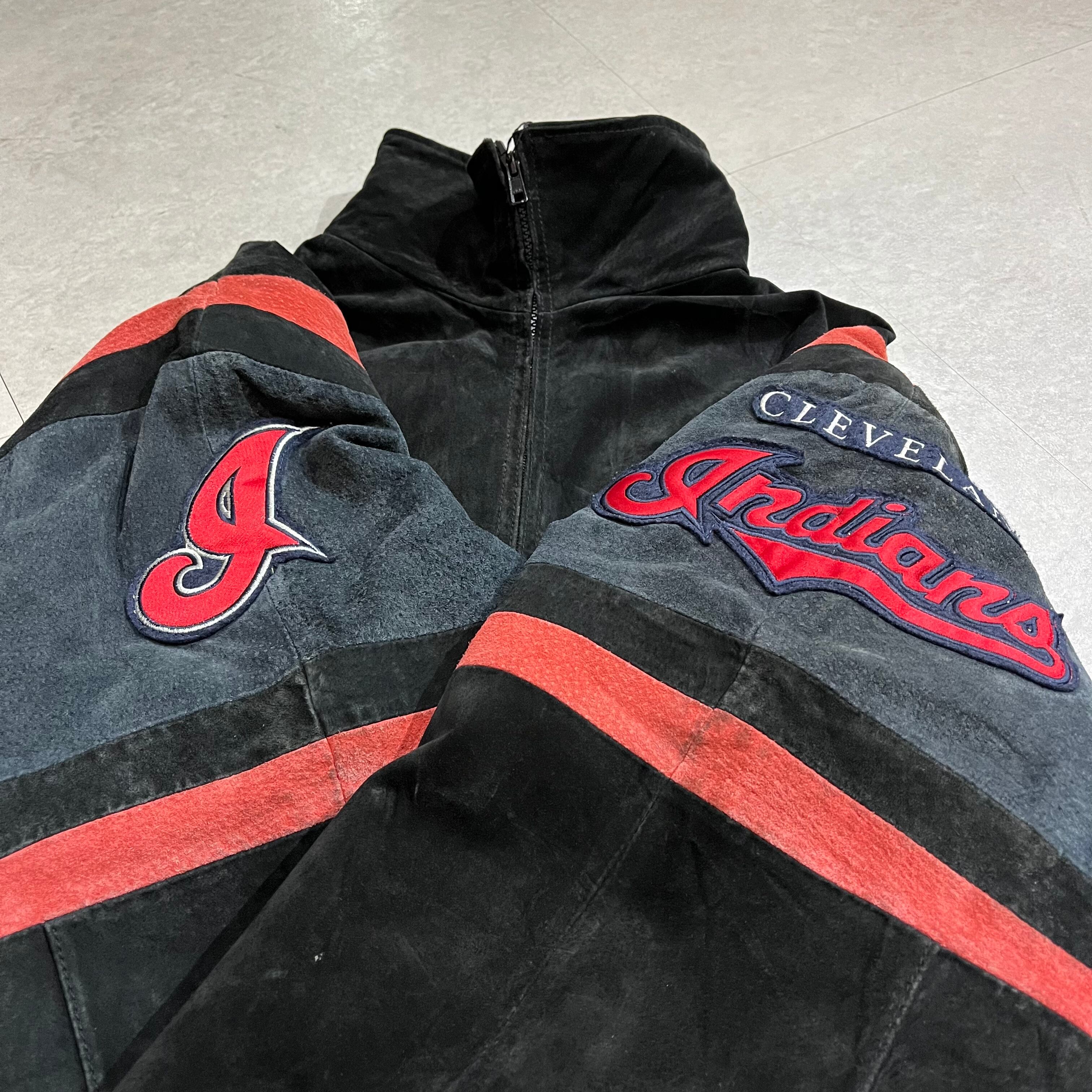 【 Indians 】インディアンス レザージャケット スウェード リアルレザー スタジアムジャンパー スタジャン レザー ワッペン ブラック 黒 古着 古着屋 高円寺 ビンテージ