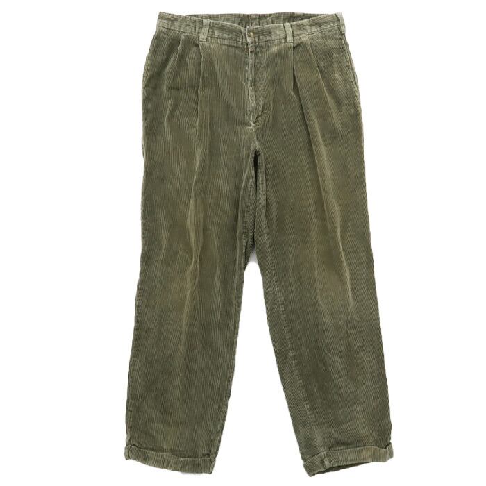 古着 太畝 コーデュロイパンツ ツータック オリーブグリーン サイズ表記:W34L30 gd37575