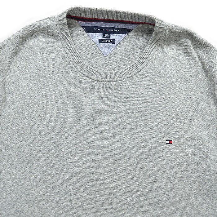 古着 TOMMY トミーヒルフィガー コットンニット セーター ワンポイント グレー サイズ表記:XXL gd68766 | 古着屋SLAT オンラインショップ 【古着通販】|東京 高円寺 レギュラー・ヴィンテージ古着