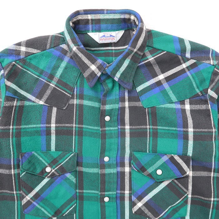 古着 80年代 USA製 DAKOTA BY FIVE BROTHER ファイブブラザー ヘビーフランネルシャツ ヘビネルシャツ チェック 長袖 グリーンベース ビンテージ サイズ表記:-- gd69717