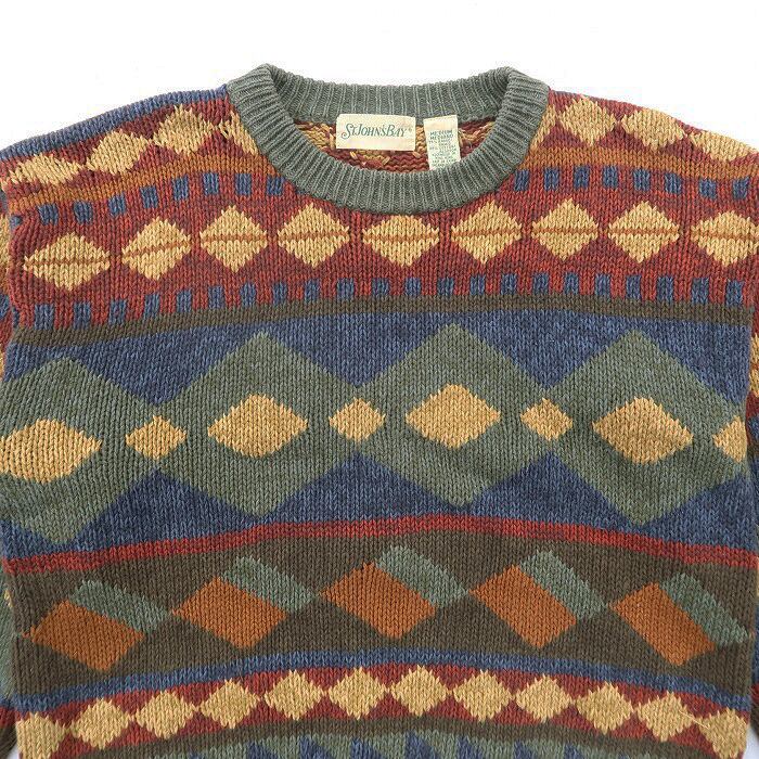 古着 ST.JOHNS'BAY ニット セーター 総柄 マルチカラー サイズ表記:M gd66724
