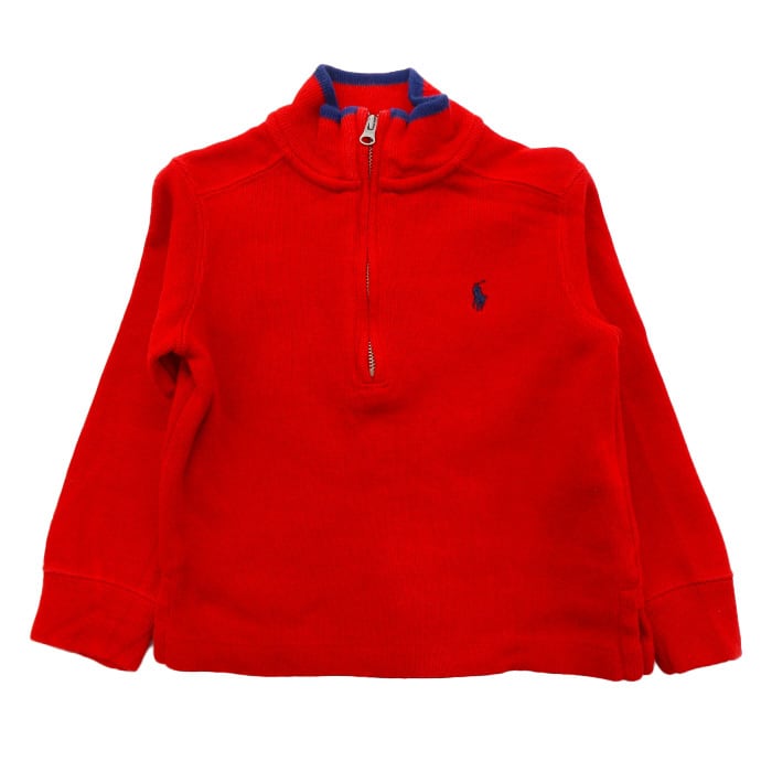 古着 キッズ ラルフローレン POLO RALPH LAUREN スウェット トレーナー ハーフジップ プルオーバー ワンポイント レッド サイズ表記:2 gd44495