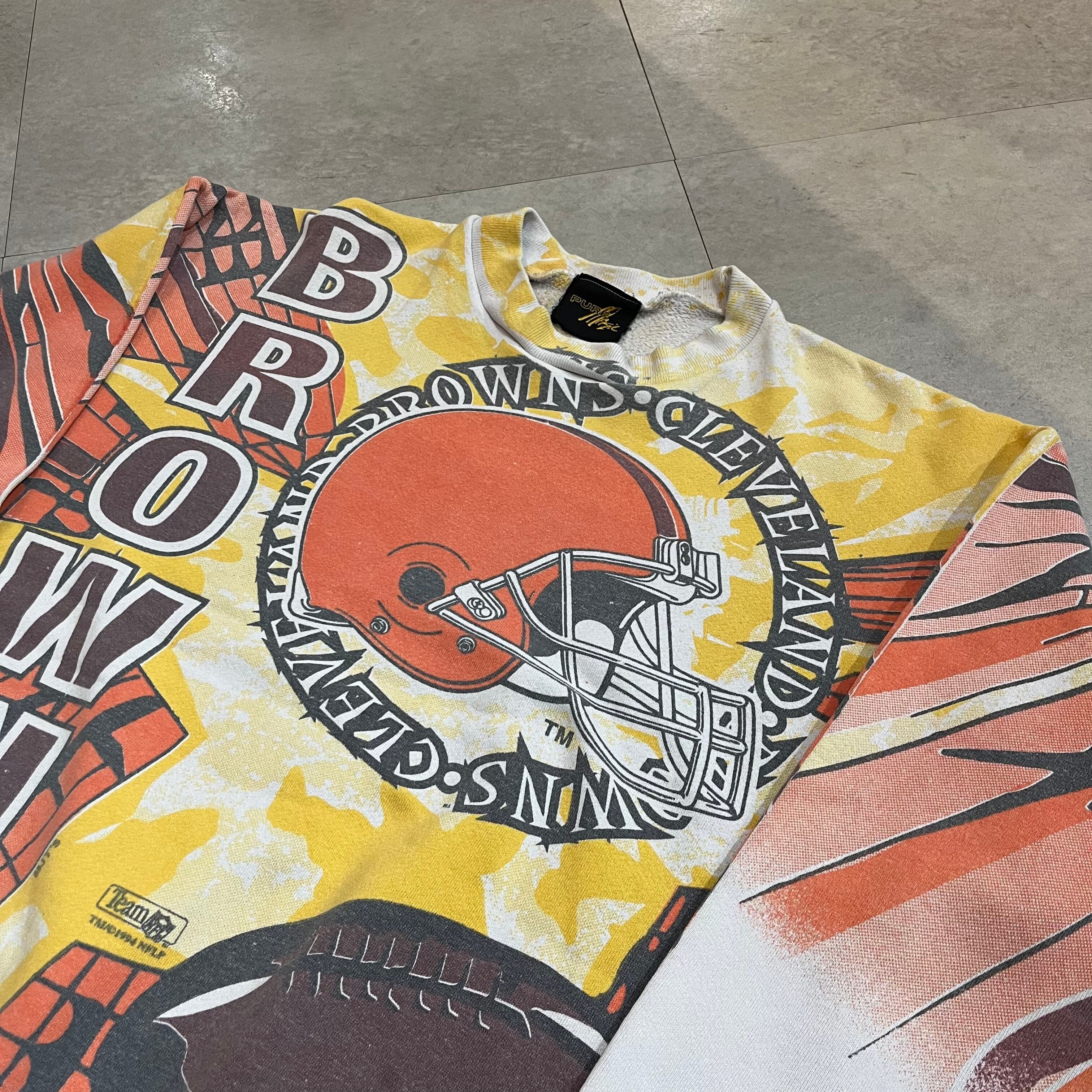 90年代 size : L程度【 BROWNS 】ブラウンズ NFL プリントスウェット スウェット オールオーバープリント 白 オレンジ 古着 古着屋 高円寺 ビンテージ