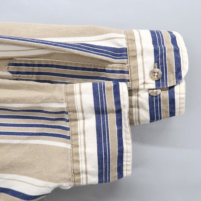 古着 ボタンダウンシャツ ストライプ 長袖 ベージュ ネイビー ホワイト サイズ表記:2XL gd67763 | 古着屋SLAT オンラインショップ 【古着通販】|東京 高円寺 レギュラー・ヴィンテージ古着