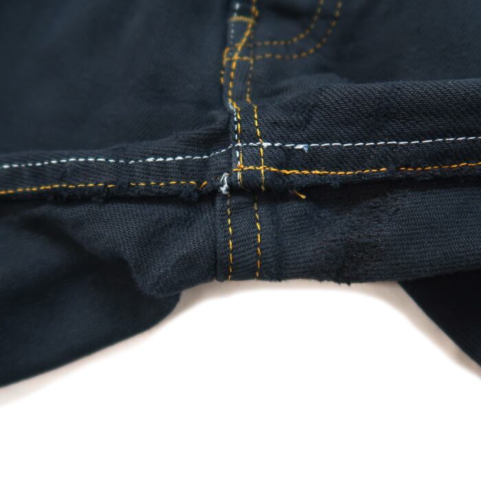 ■説明:全体的に使用感があるほか、数ヵ所にダメージ、股付近にリペア跡、フロント左腿付近に薄汚れがありますが、古着慣れした方なら気にならない程度だと思います。