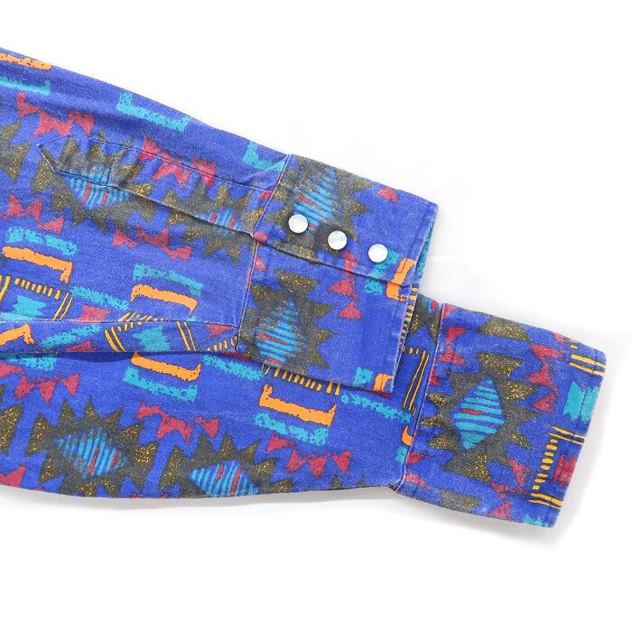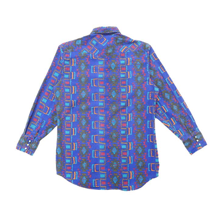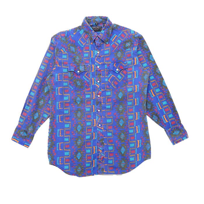 古着 ウエスタンシャツ 長袖 総柄 ブルーベース サイズ表記:M gd67121