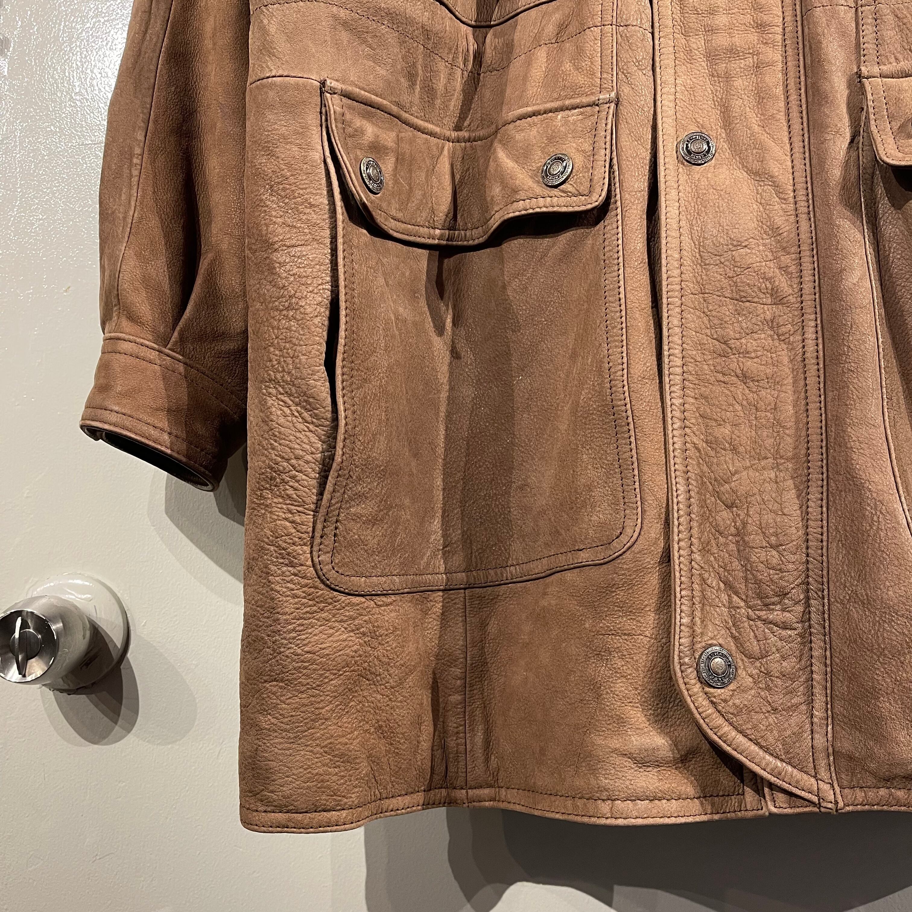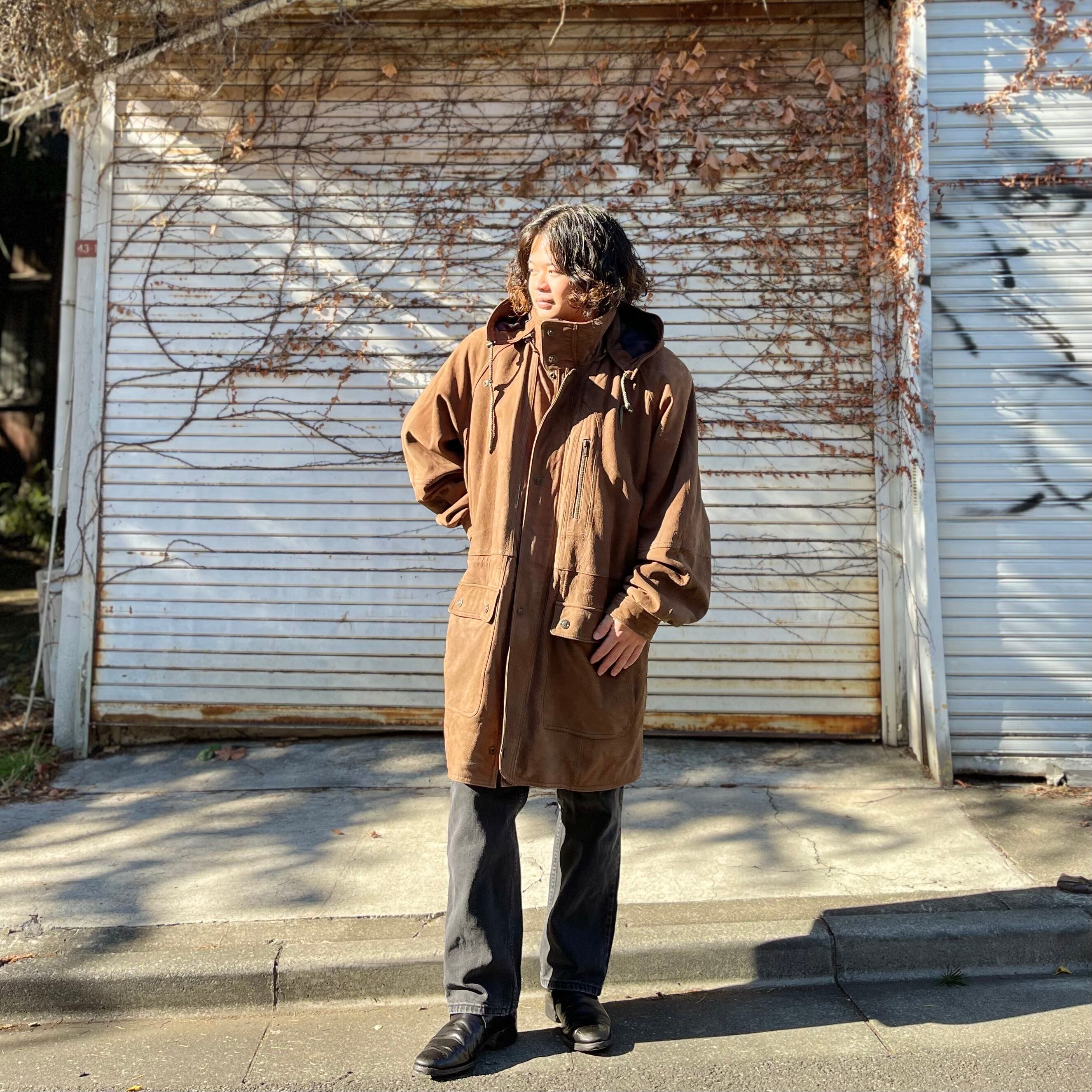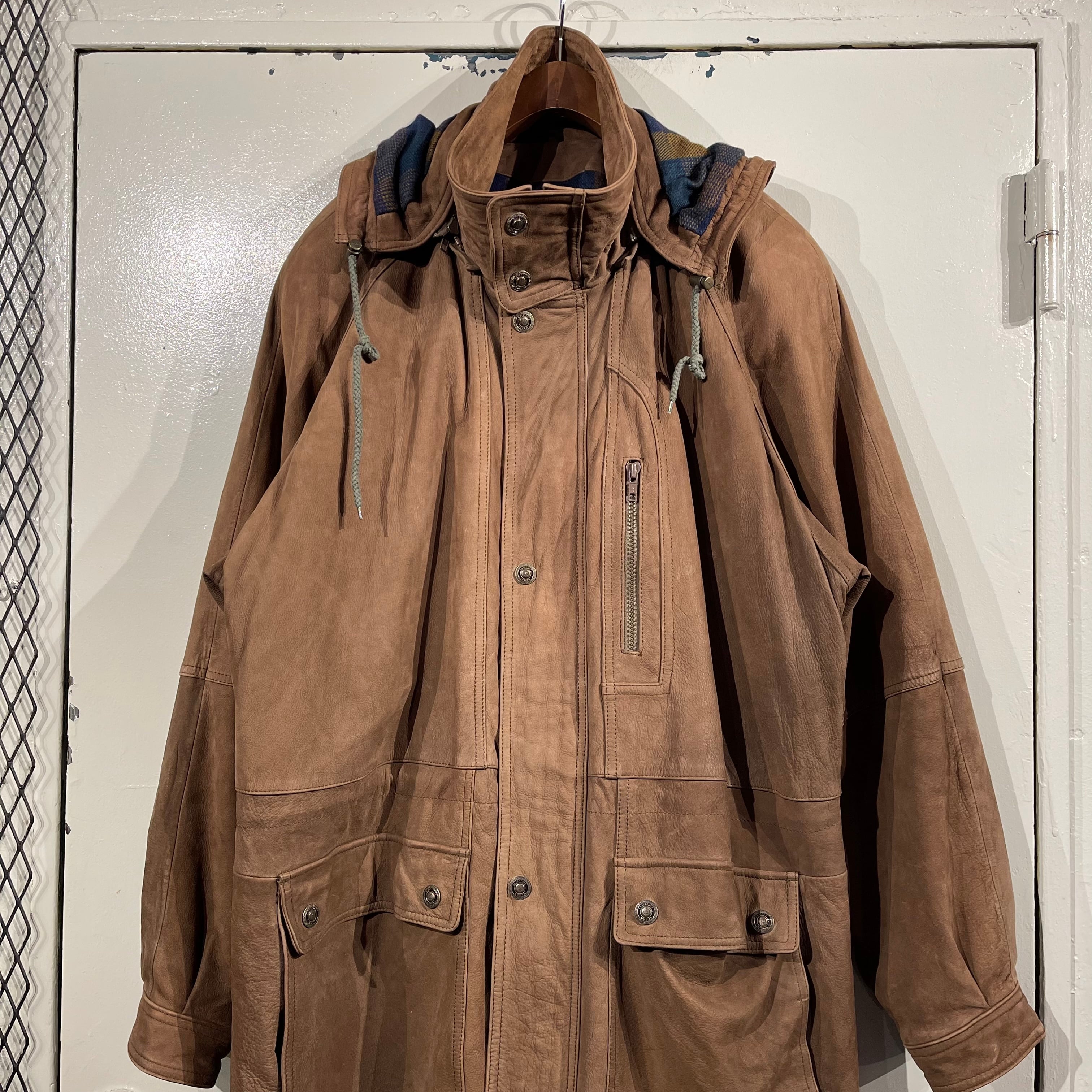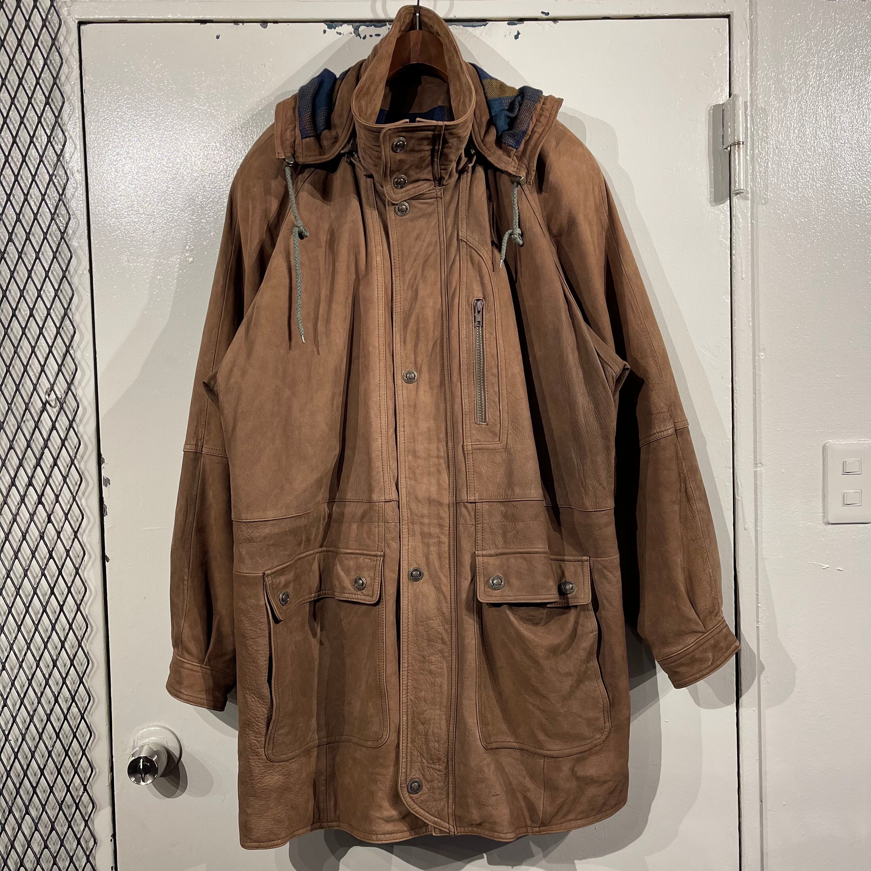 『L』ADVENTURE BOUNO レザー ジャケット ミドル丈 茶 フード取り外し 古着 古着屋 高円寺 ビンテージ