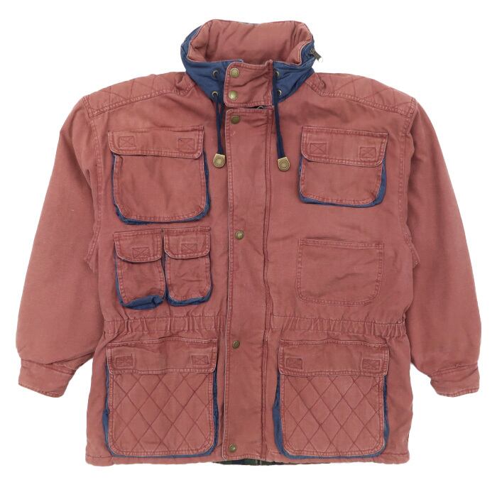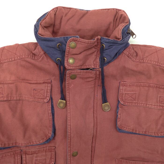 ■説明:全体的に色褪せ、軽いダメージなどの使用感があるほか、フロント右下ポケットに汚れ、フードに軽いダメージがありますが、古着慣れした方なら気にならない程度かと思います。