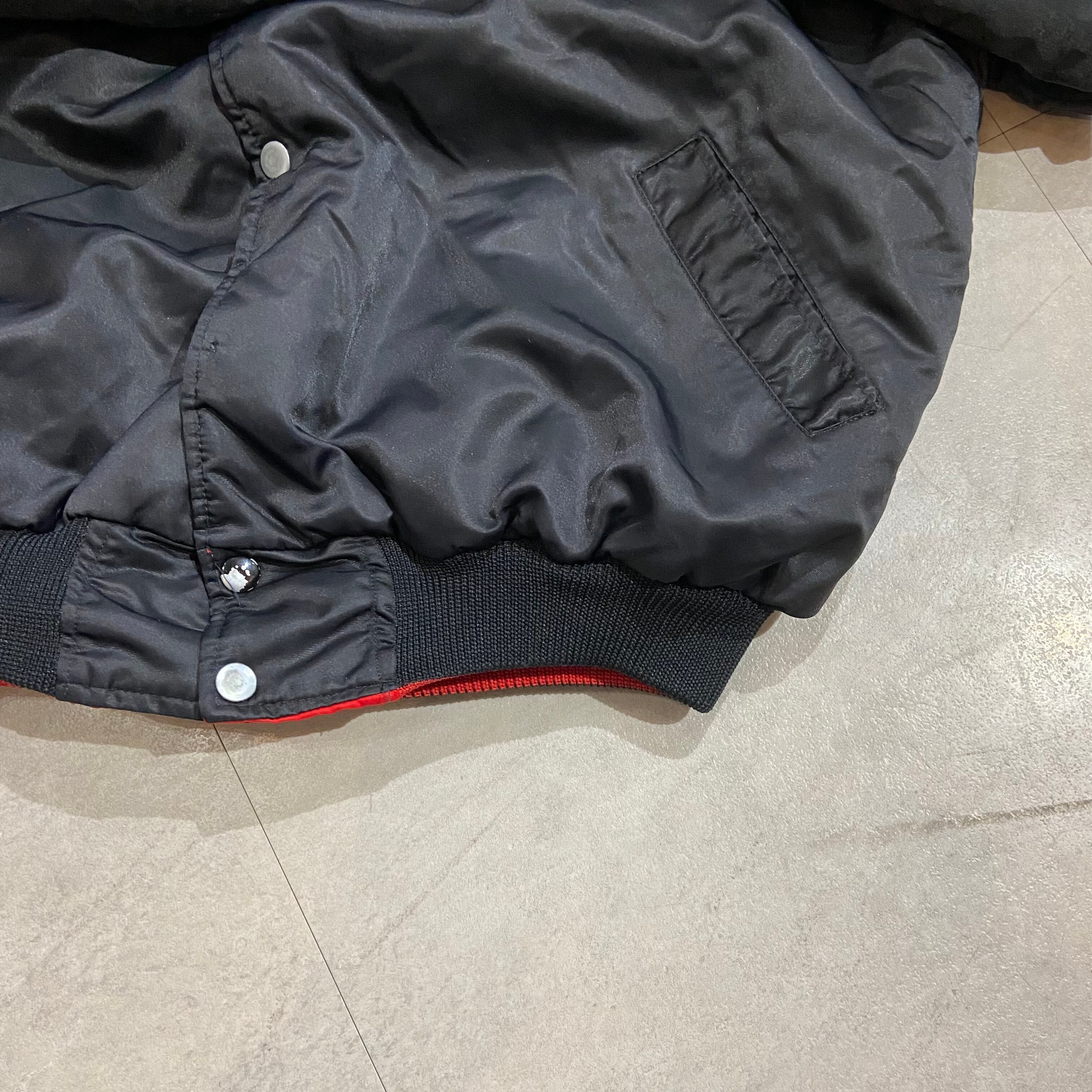 size : L程度【 BULLS 】リバーシブル シカゴブルズ ナイロンスタジャン スタジアムジャンパー リバーシブル 赤 黒 古着 古着屋 高円寺 ビンテージ