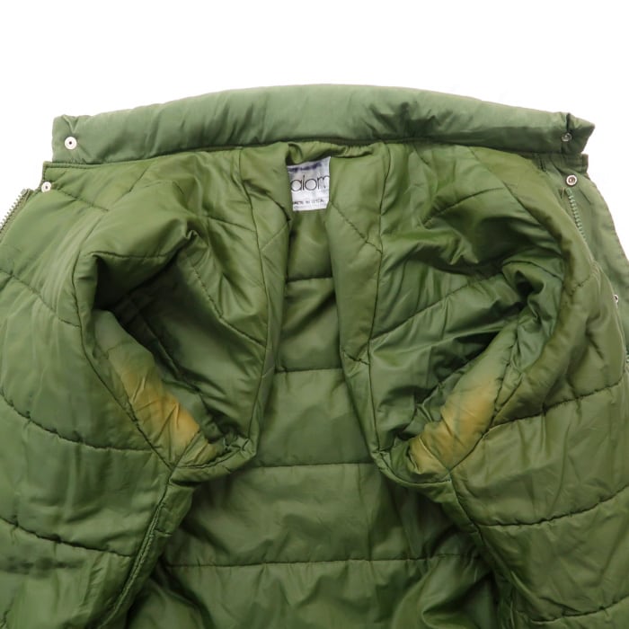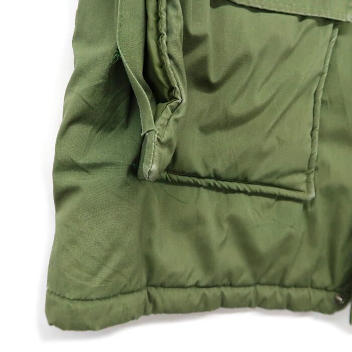 ■説明:全体的に色褪せなどの使用感があるほか、数ヶ所の汚れや細かいダメージ、フロント両腰ポケット、両袖口にダメージがありますが、古着慣れした方なら気にならない程度かと思います。80年代頃のアウトドアブランドがデザインしていたマウンテンパーカーに近いディティールが盛り込まれた一着で、防寒性も高いアイテムです◎