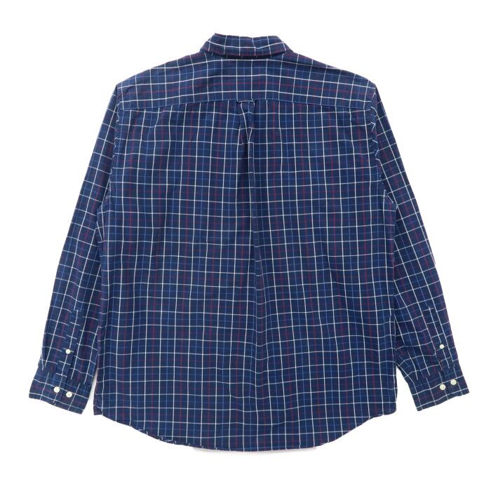 古着 ノーティカ NAUTICA ボタンダウンシャツ 長袖 ワンポイント チェック ネイビー サイズ表記:L gd43021