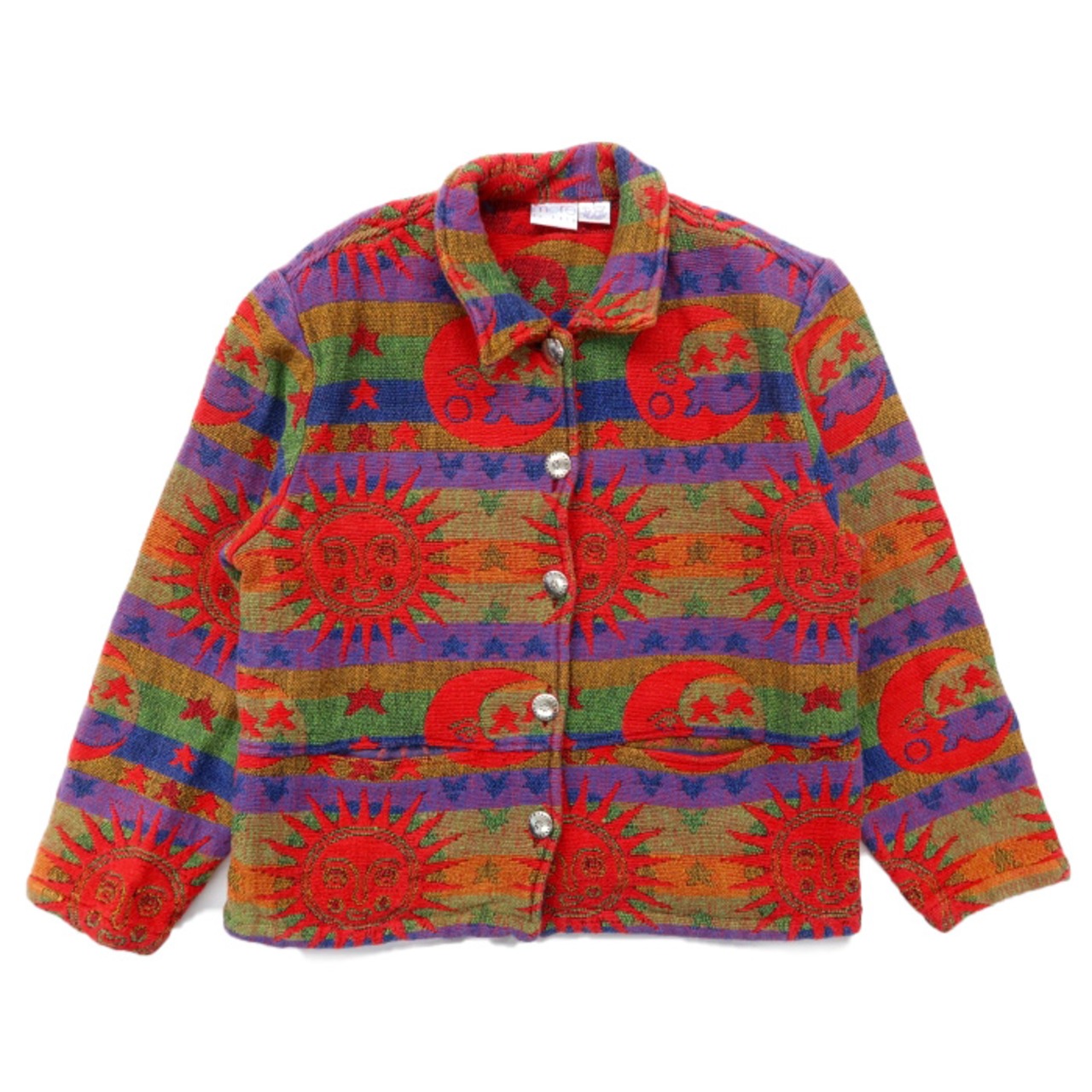 ■説明:全体的に使用感がありますが、目立った汚れやダメージはなく、古着慣れした方なら気にならない程度かと思います。古着らしい個性的な柄が目を引く一着◎