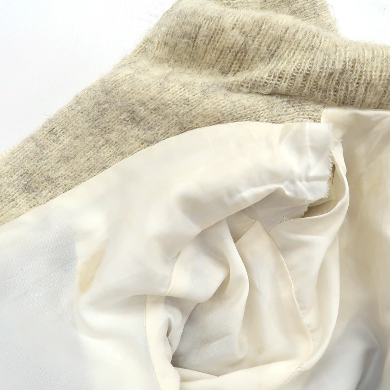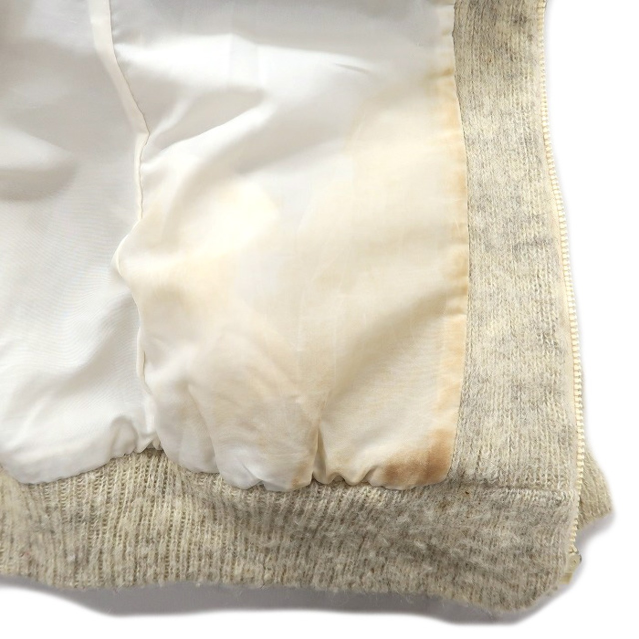■説明:全体的に使用感があるほか、フロント左袖下部に汚れ、バック左袖口にダメージ穴、裏地に破れ、汚れがありますが古着慣れした方なら気にならない程度かと思います。