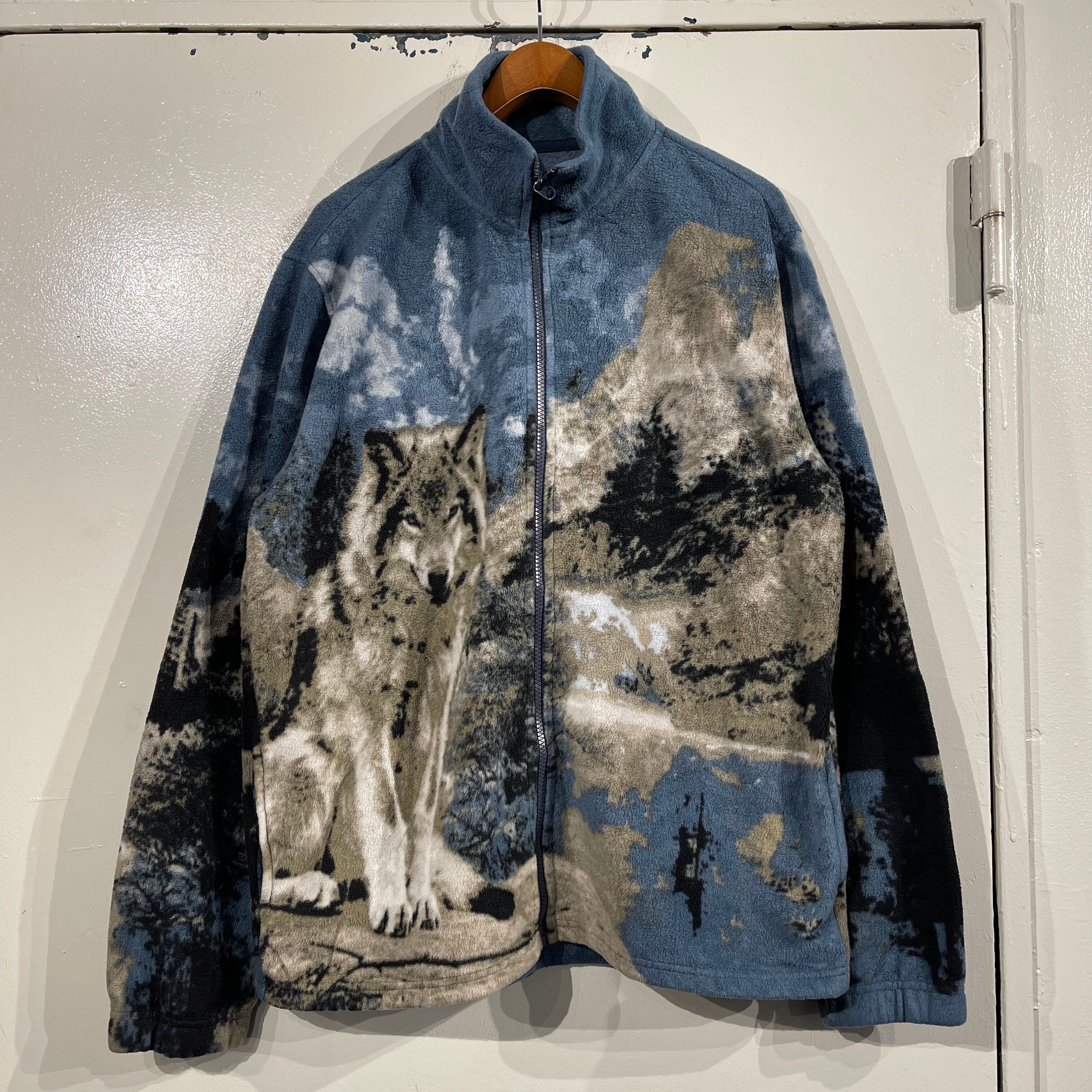 『L』atlas for men フリース オオカミ アニマル ブルー 古着 古着屋 高円寺 ビンテージ