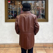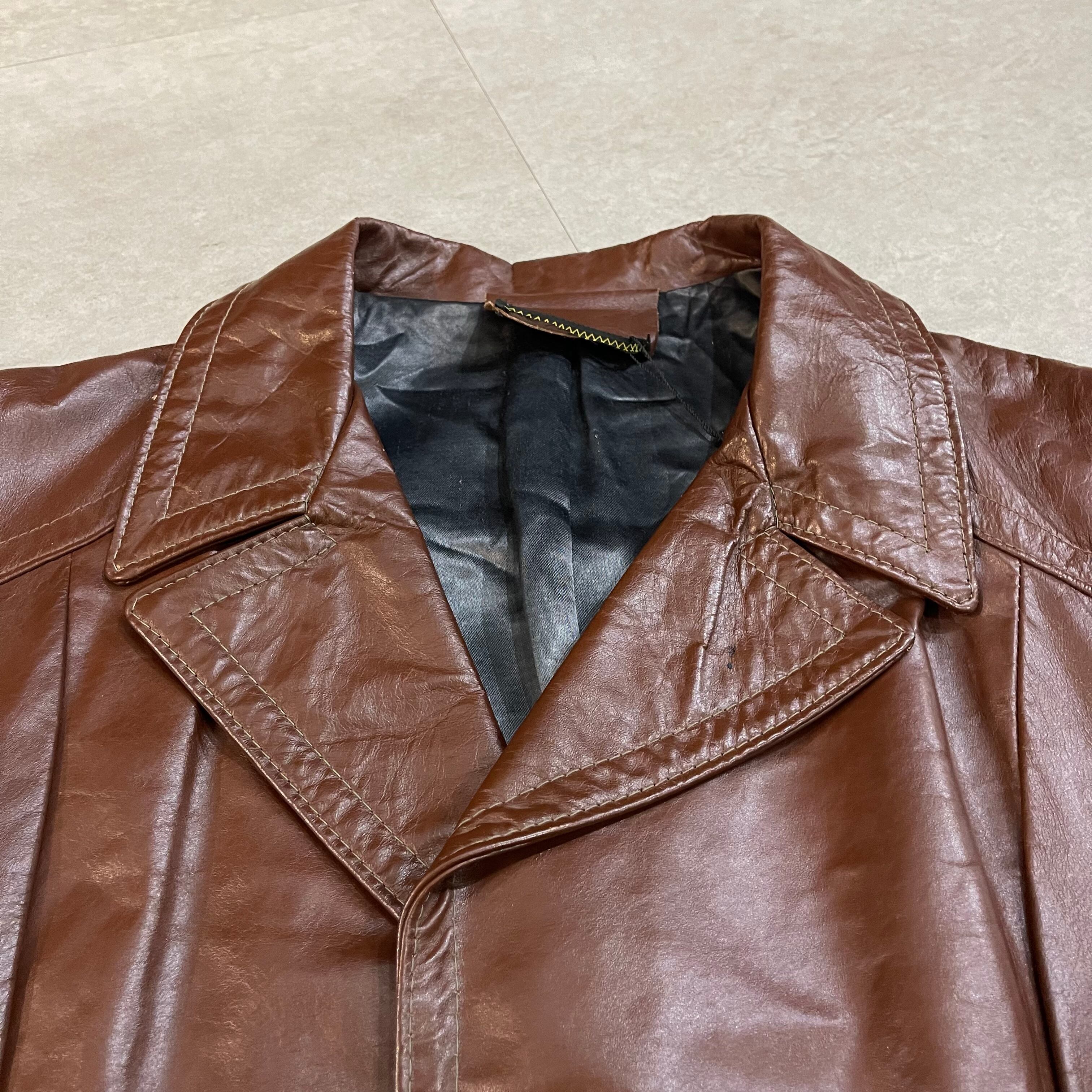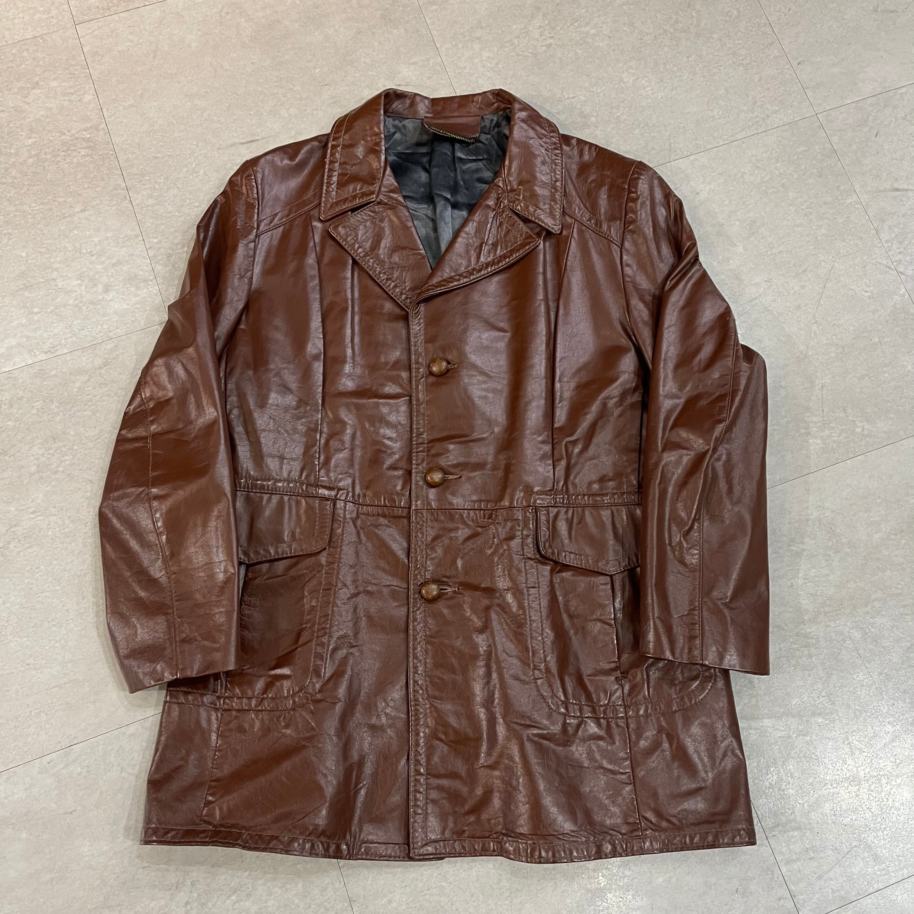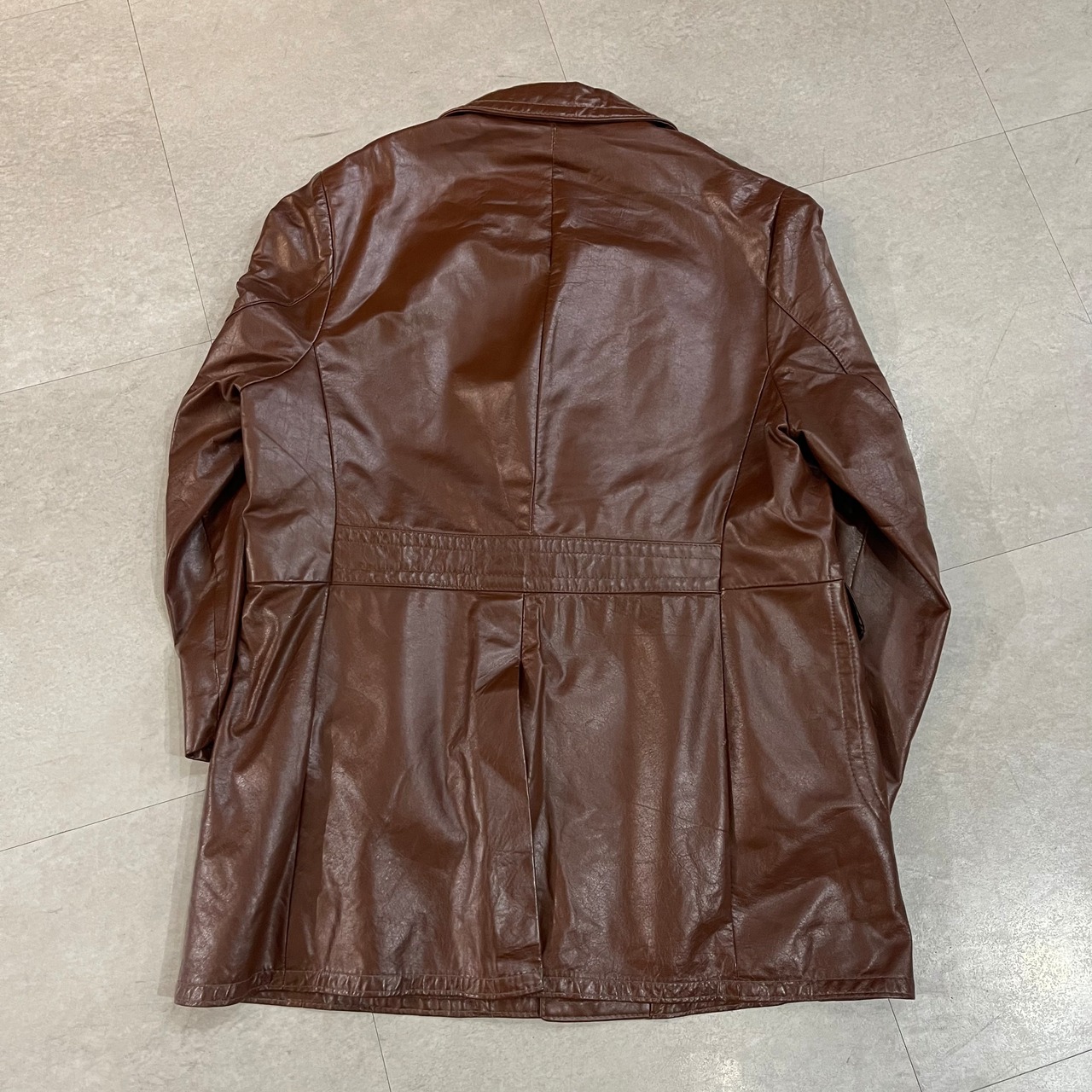 『2XL』レザージャケット ラペル型 くるみボタン 茶 古着 古着屋 高円寺 ビンテージ