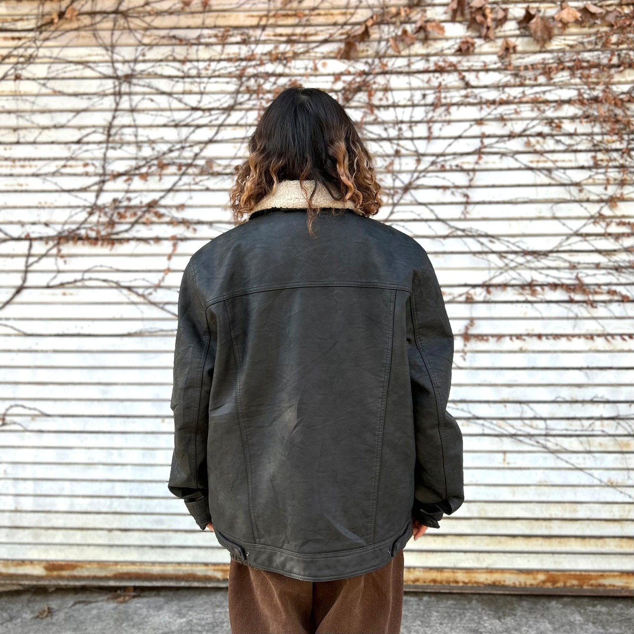 『XL』Levi's リーバイス レザージャケット フェイクレザー トラッカータイプ ボア切り替え 黒 古着 古着屋 高円寺 ビンテージ