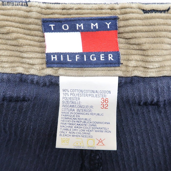 古着 TOMMY トミーヒルフィガー 太畝 コーデュロイパンツ ツータック ネイビー サイズ表記:W36L32 gd73653