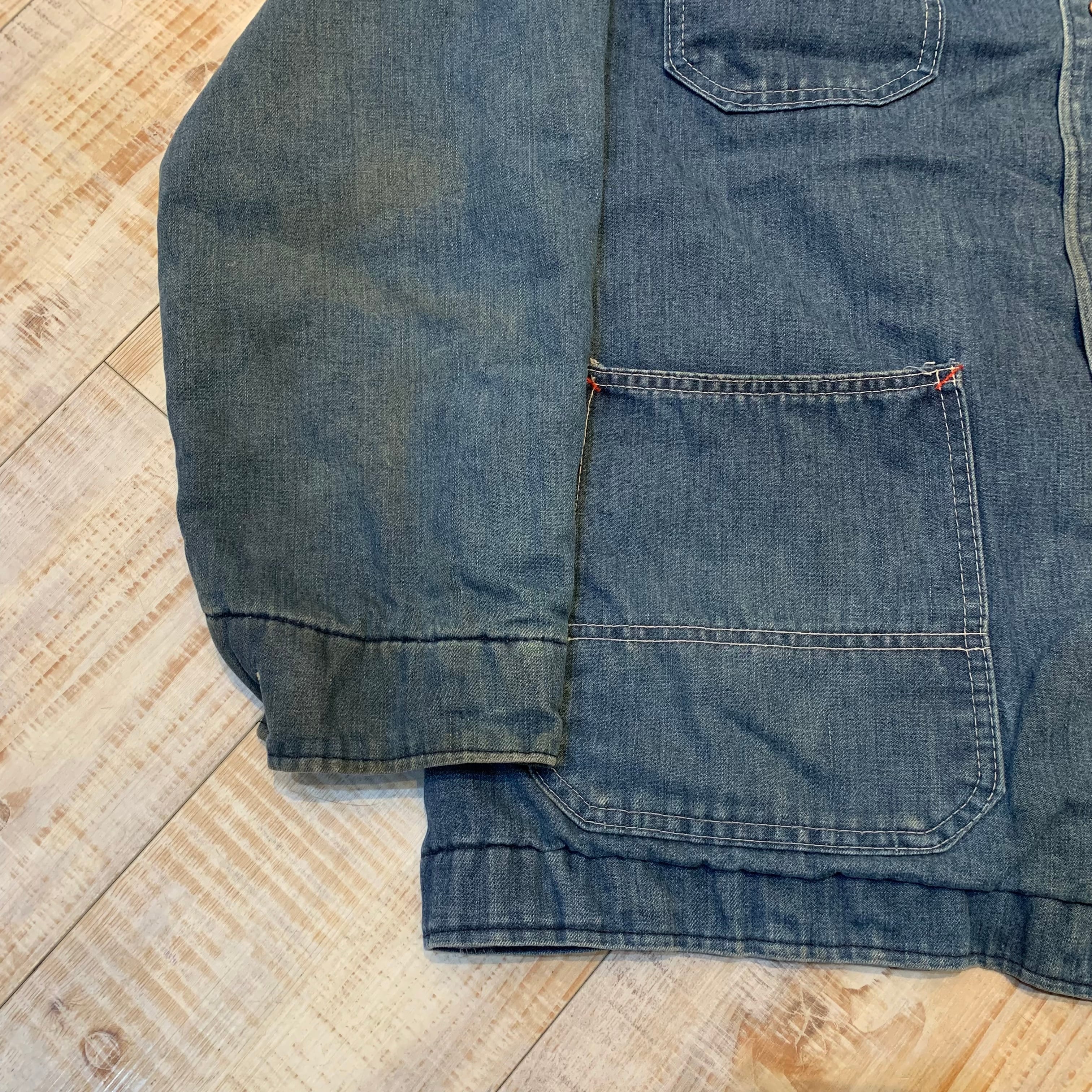 裏地はブランケットとなり襟はコーデュロイ切り替えし仕様となります。全体的に汚れは見られますが非常に良い雰囲気で色残りは良く、程よく着込まれた柔らかい質感の着心地の良い1着です。