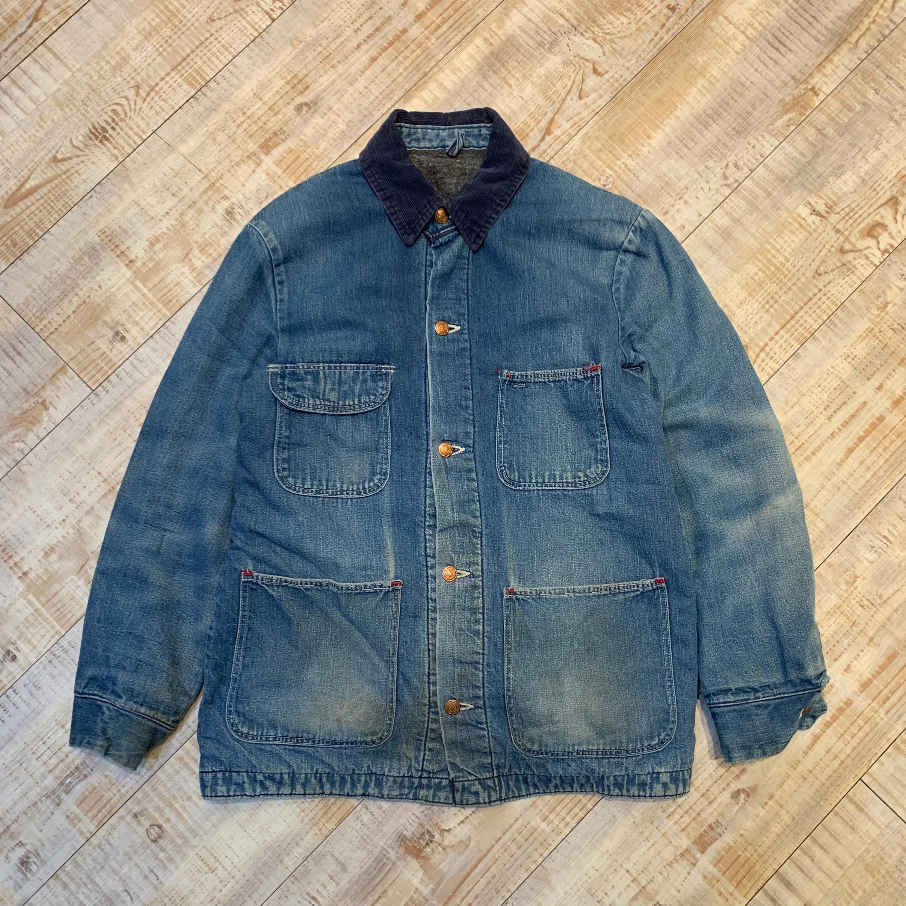 商品説明 : 70年代頃のラングラーのデニムカバーオール。裏地はブランケット、襟コーデュロイ仕様。