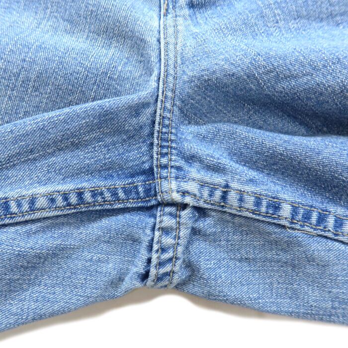 ■説明:全体的に使用感があるほか、フロント右もも、右バックポケットに薄汚れ、フロント左下部、バック右下部に色抜け、バック両裾口、右バックポケット付近にダメージがありますが、古着慣れした方なら気にならない程度かと思います。レディースアイテムですが、サイズ大きめでユニセックスでおすすめです。