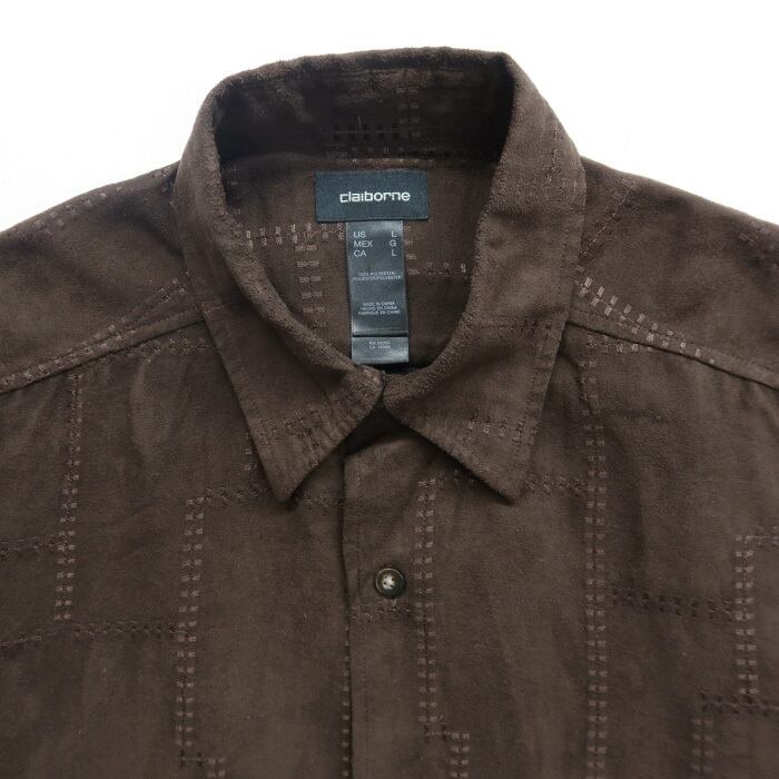 古着 フェイクスウェードシャツ チェック 長袖 ブラウン サイズ表記:L gd36832