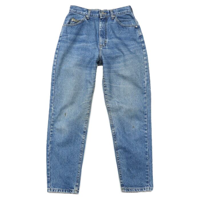 ■説明:全体的に色褪せなどの使用感があるほか、フロント両膝付近に汚れ、股部分、両裾にダメージがありますが、古着らしい良い雰囲気となっております。テーパードシルエットがユニセックスでおすすめです◎
