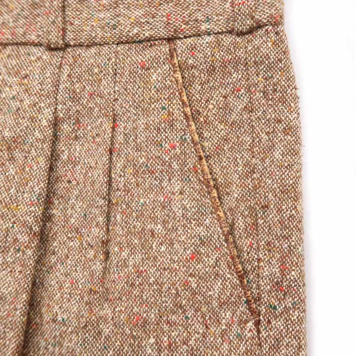 古着 ツイードパンツ スラックス ブーツカット フレアパンツ ツータック ブラウンベース サイズ表記:W32L32 gd74335